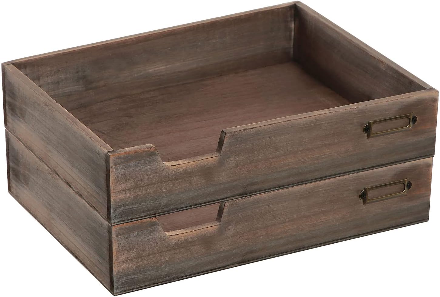 MyGift Set of 2 Vintage Distressed Finish Brown Wood Stackable Office Desktop Document Letter Paper Tray
