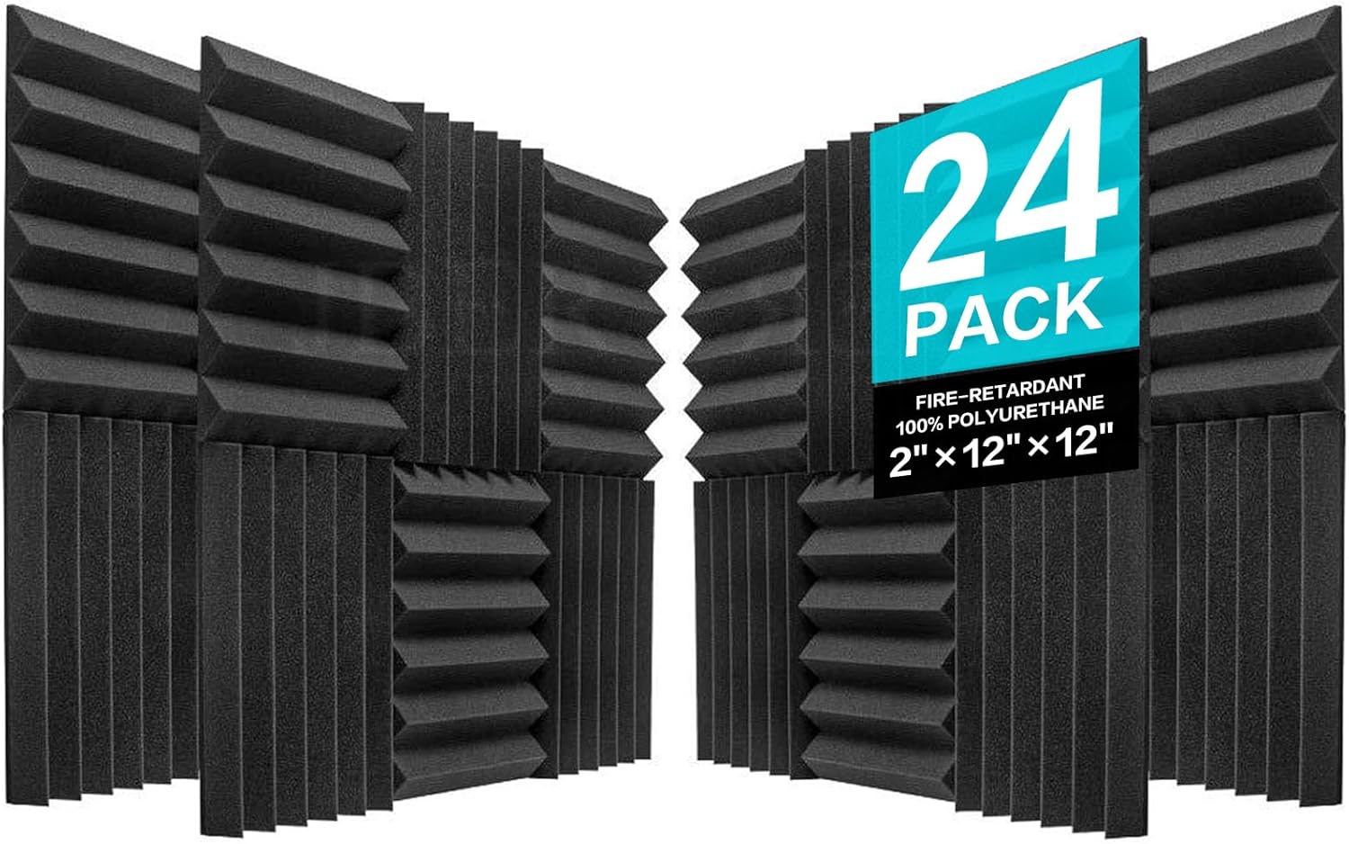 JBER Acoustic Panels Studio Foam Wedges Fireproof Soundproof Padding Wall Panels 2" X 12" X 12" (24 Pack Wedge 2" - Charcoal)