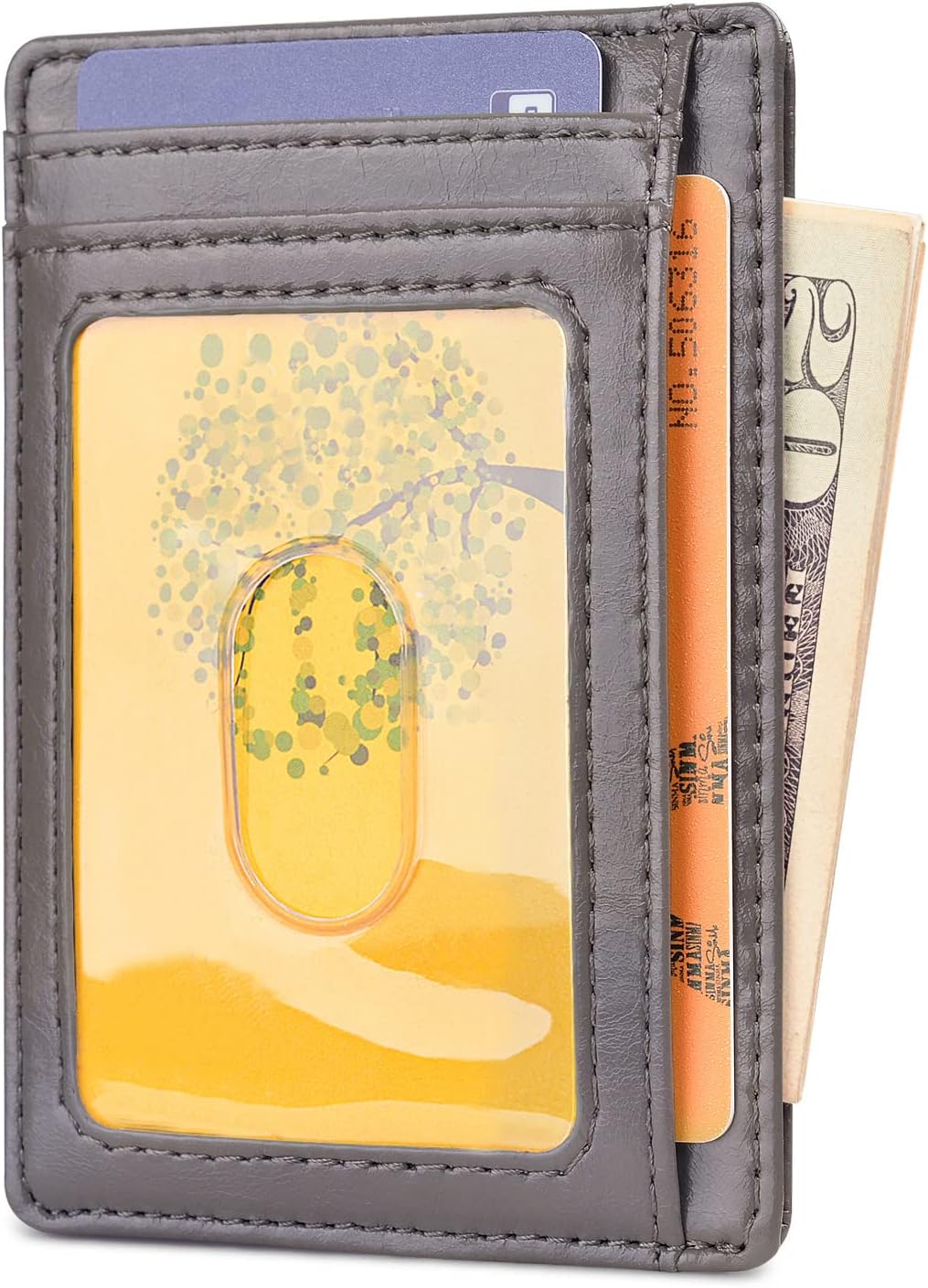 Buffway Slim Minimalist Front Pocket RFID Blocking Leather Wallets for Men and Women - Alaska Grey