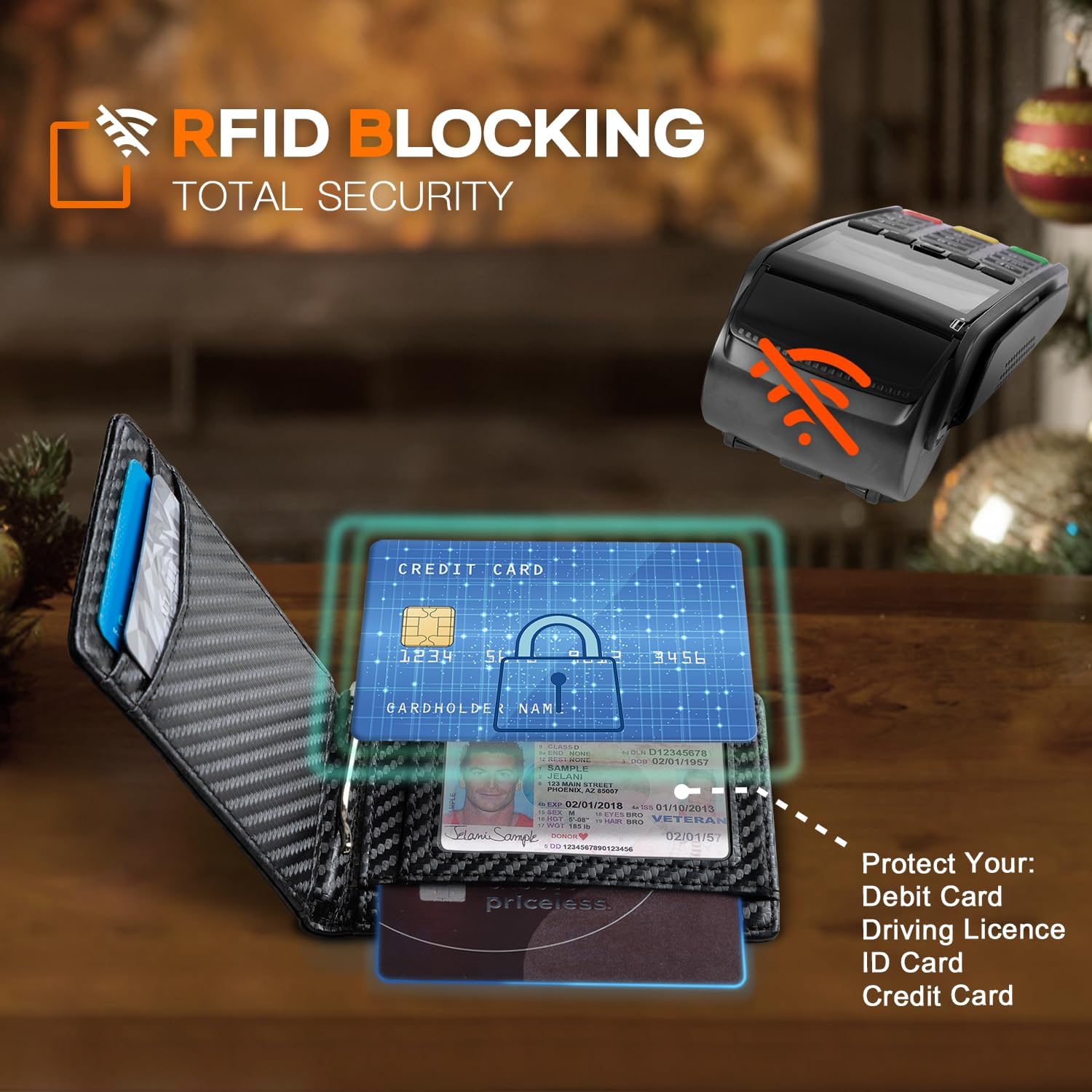 Slim Wallet for Men Genuine Leather RFID Blocking Bifold Minimalist Front Pocket Mens Wallet with Money Clip Thin Gift Box