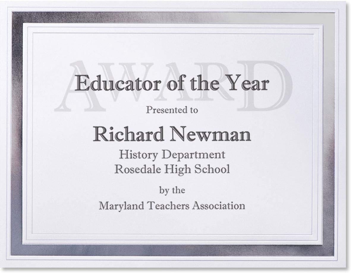 - Sophisticated Design: Each box includes 50 embossed 8½" x 11" certificates crafted from 38lb white paper, featuring a striking bold silver foil inner border that adds an elegant touch to every award