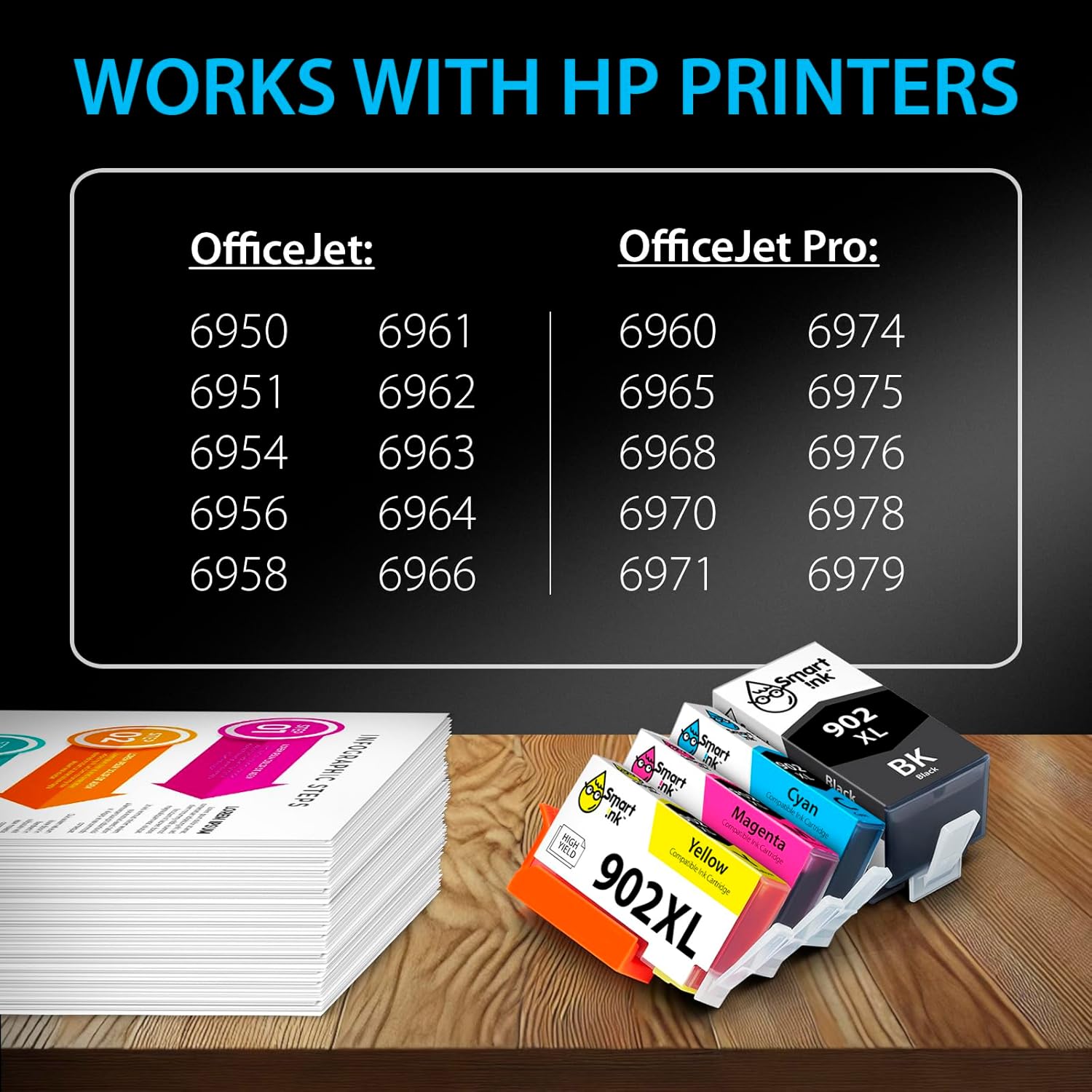 - HP OfficeJet Pro Compatibility: Smart Ink 902 ink cartridges for HP printers are compatible with HP OfficeJet 6950 6951 6954 6956 6958 6961 6962 6963 6964 6966 printers.
