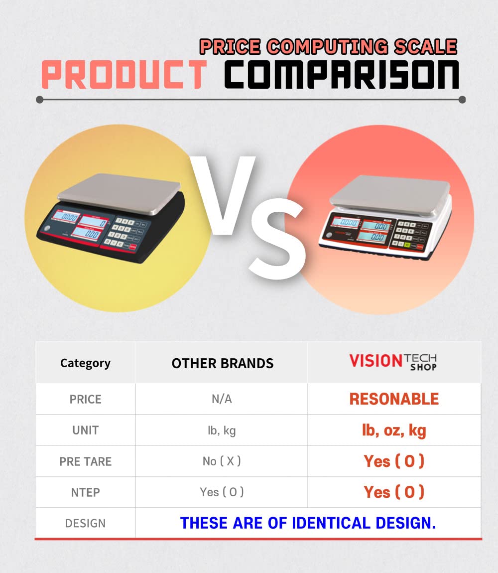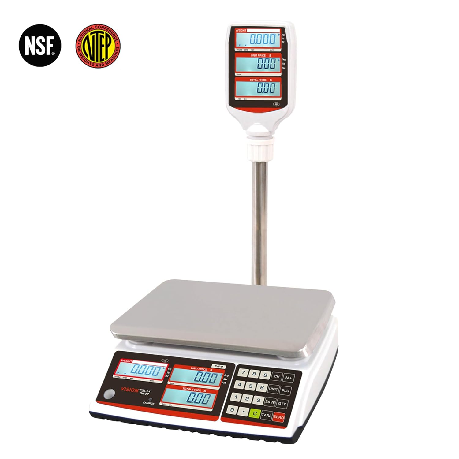 VisionTechShop TVP-30P Price Computing Scale with Pole Display, Lb/Oz/Kg, 30lb Capacity, 0.005lb Readability, NTEP Legal for Trade COC #19-038, NSF Certified