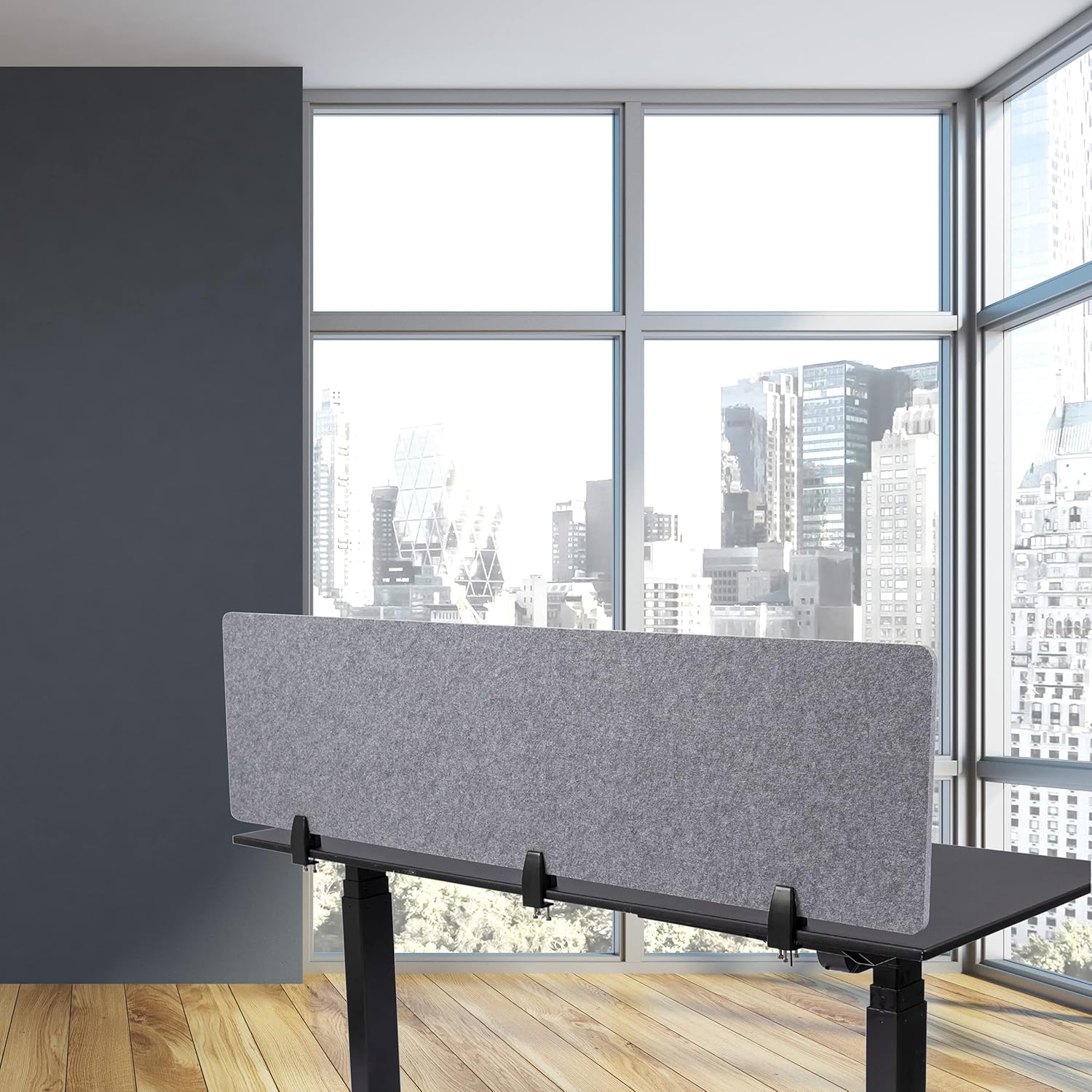 Stand Up Desk Store ReFocus Raw Clamp-On Acoustic Desk Divider Mounted Privacy Panel to Reduce Noise and Visual Distractions (Castle Gray, 59" x 16")