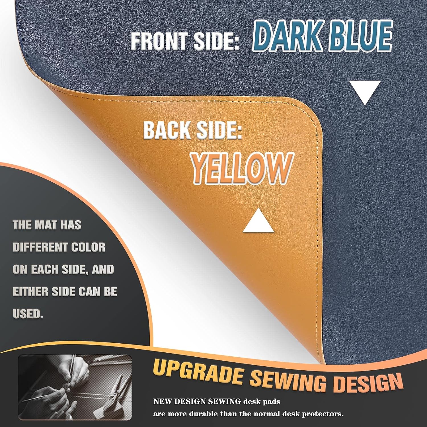 K KNODEL Desk Mat, Blotter, Dual-Sided Office Desk Pad, Waterproof Desk Mat for Desktop, Desk Blotters, PVC Leather Pad Protector (Dark Blue, 35.4" x 17")
