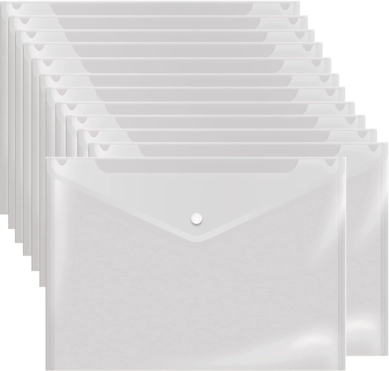 Poly Envelope 12 Pcs Document Envelopes with Snap Button Quality Clear Document Folder for A4 Size (Clear)