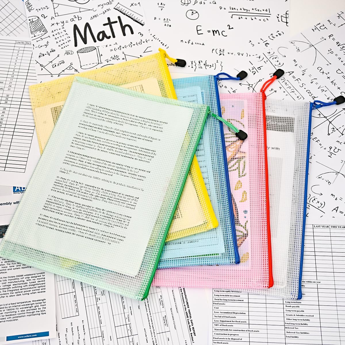 AUSTARK 10 Pcs Zipper File Bags, Waterproof Plastic Mesh Pouch for Office School, Board Game Storage Bags (A4 Size 13.4''x9.4'', Multicolored)