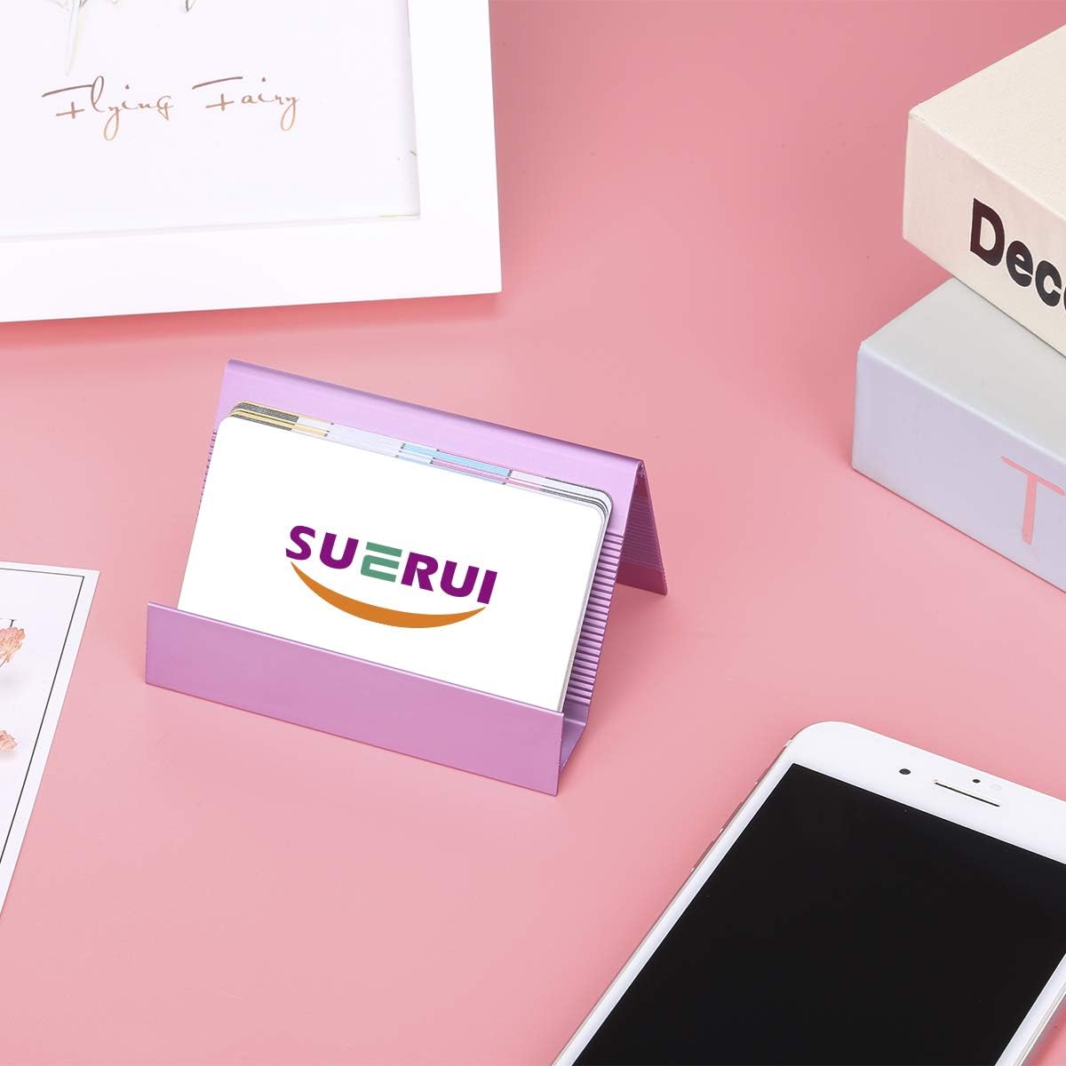 Business Card Holder Aluminum Business Card Display Stand Desktop Organizer, High-end New Series (Light Purple) 1 Pack