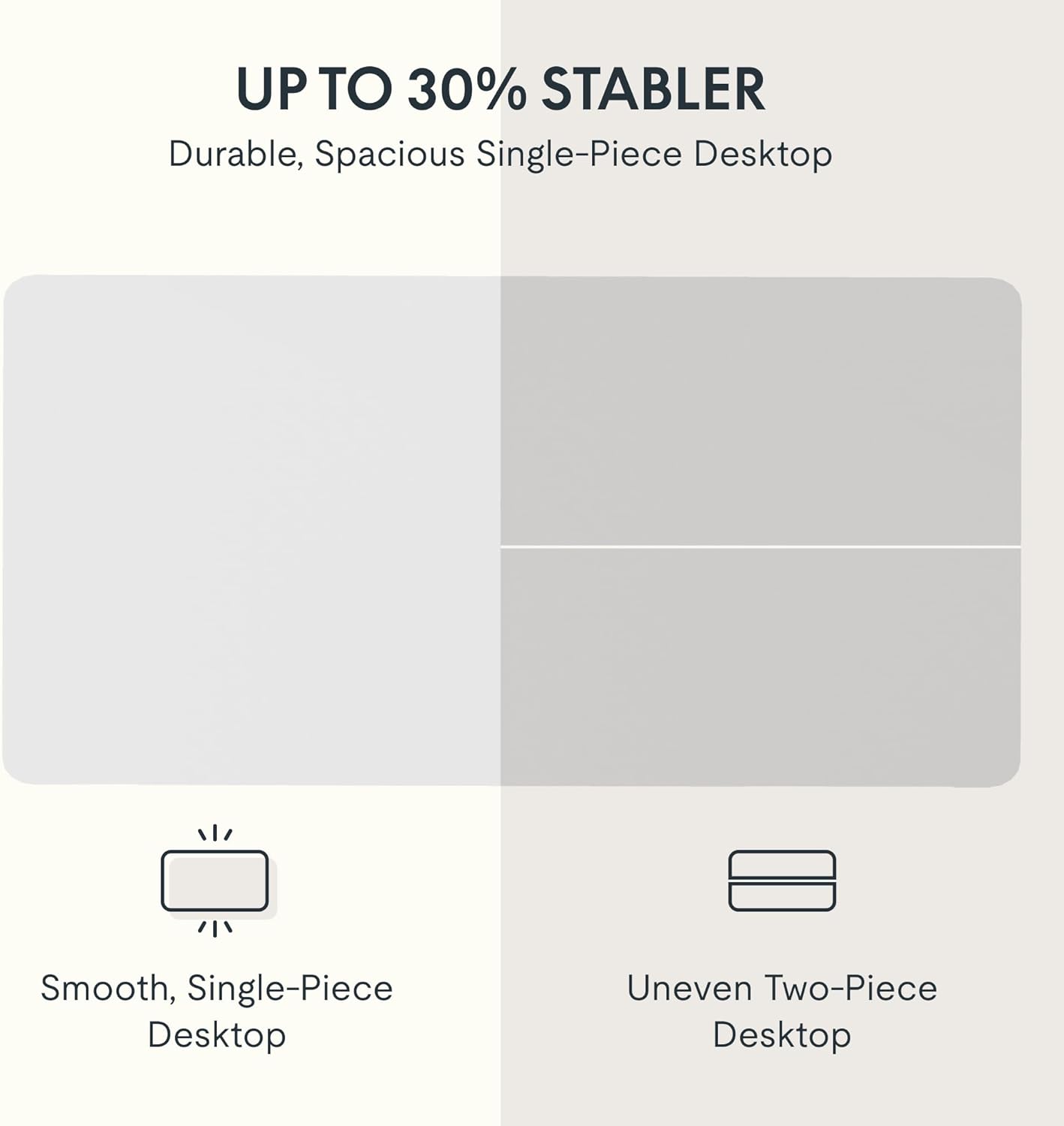 - AMPLE WHOLE-PIECE DESKTOP: With its whole-piece 1” eco-friendly desktop, this standing desk provides plenty of room for your computer setup, documents, and accessories, creating a well-organized and productive work environment. Due to hand measurements, desktop dimensions may vary slightly by 0 to 1”.