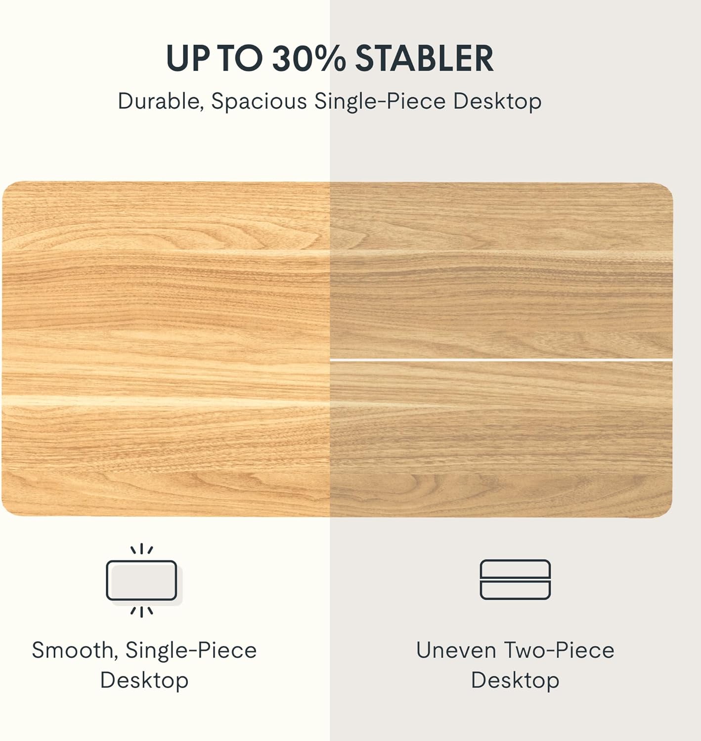 - AMPLE WHOLE-PIECE DESKTOP: With its whole-piece 1” eco-friendly desktop, this standing desk provides plenty of room for your computer setup, documents, and accessories, creating a well-organized and productive work environment. Due to hand measurements, desktop dimensions may vary slightly by 0 to 1”.