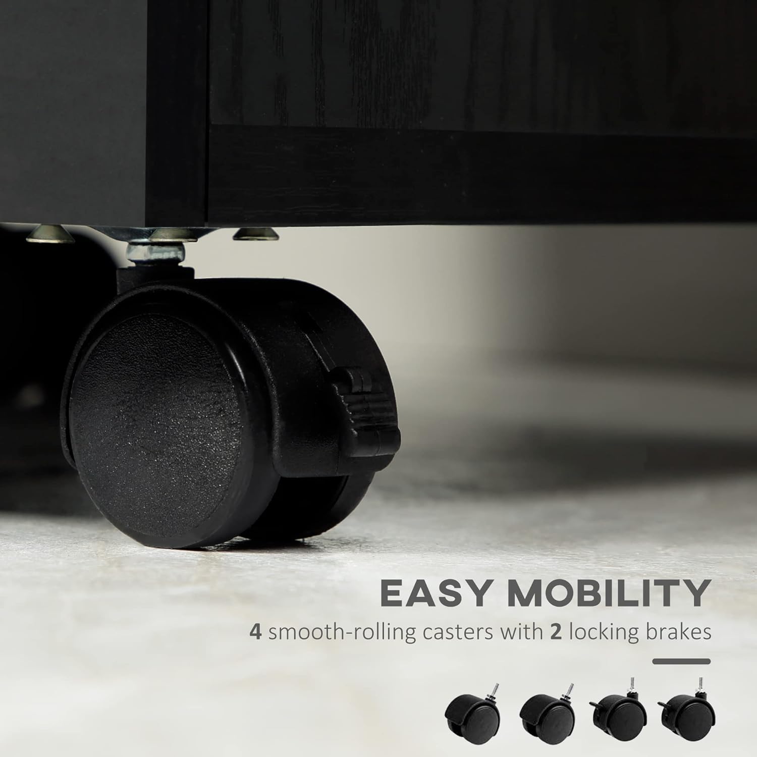 - Easy Mobility: The four smooth-rolling casters with two locking brakes make the mobile cabinet super simple to move and relocate throughout the office or house.