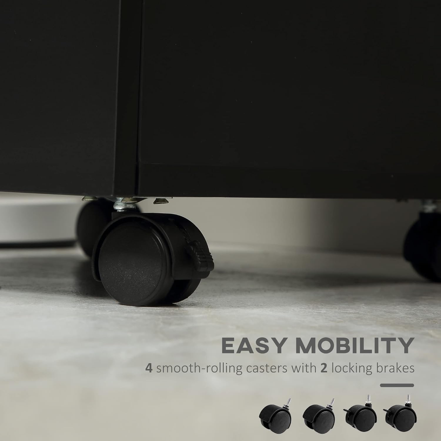 HOMCOM 3 Drawer Mobile File Cabinet, Rolling Printer Stand, Vertical Filing Cabinet, Black