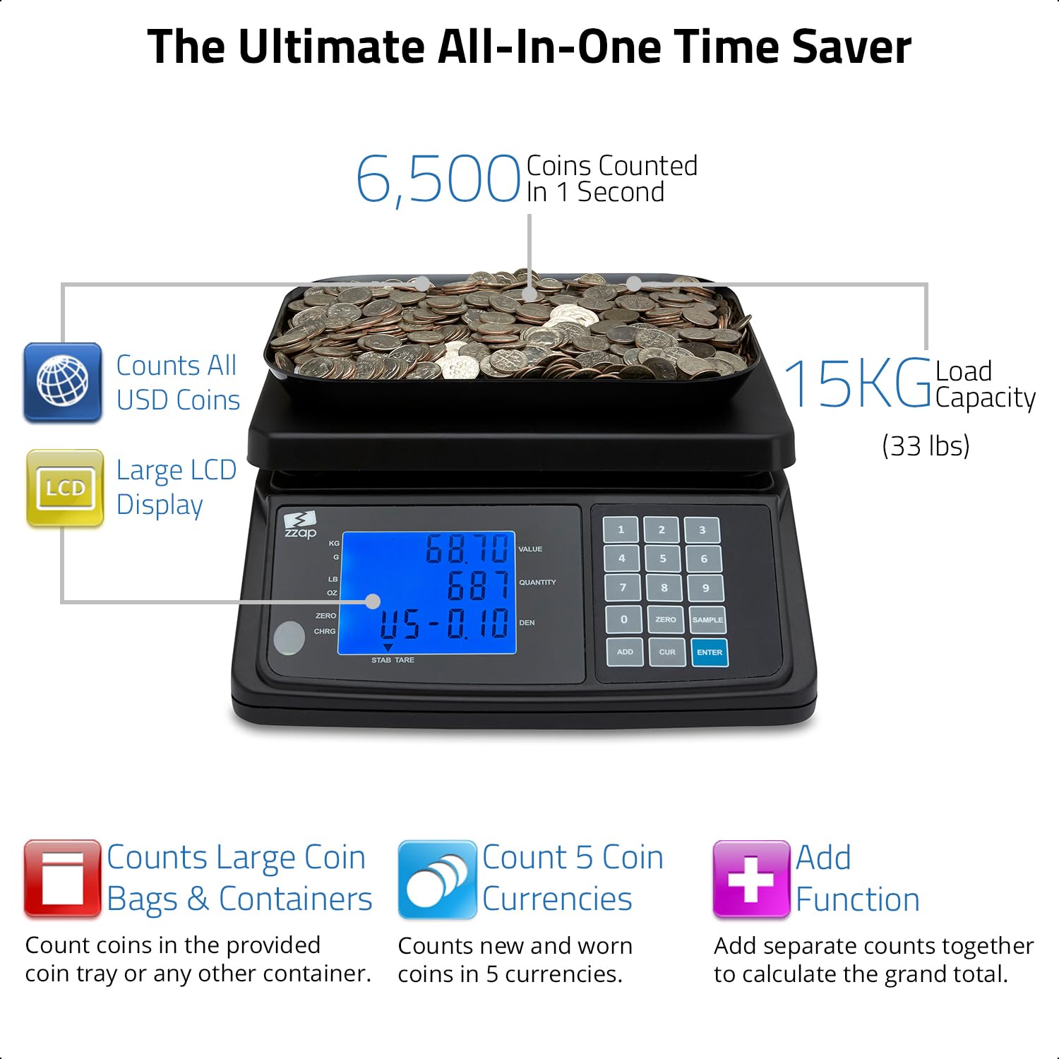 ZZap MS20 Coin Counting Scale - Money Cash Currency Weighing Machine