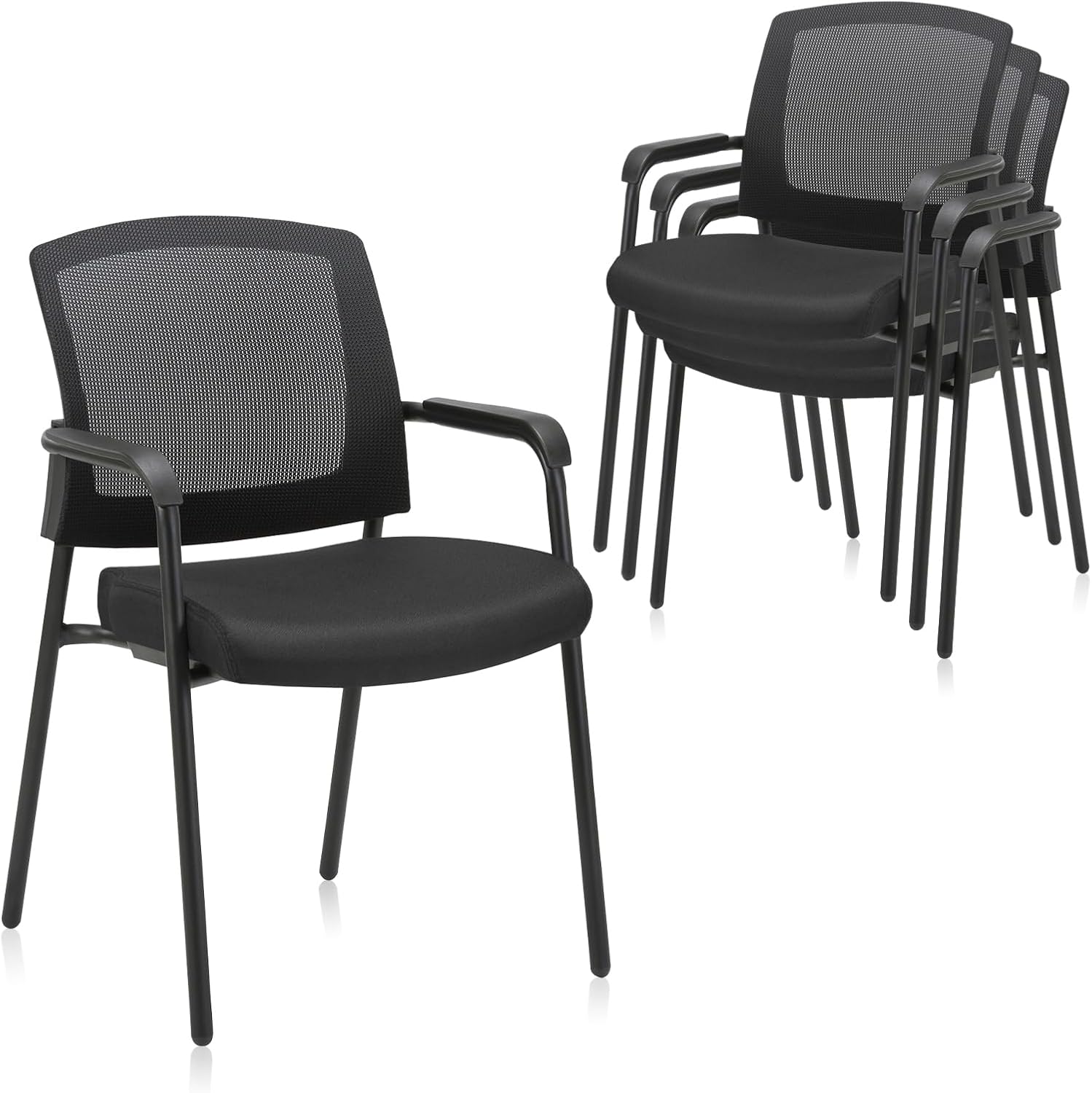 CLATINA Office Reception Guest Chair Mesh Back Stacking with Ergonomic Lumbar Support and Thickened Seat Cushion for Waiting Conference Room Black 4 Pack