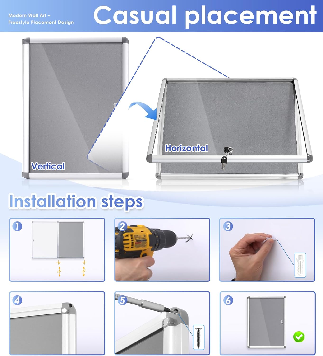 - Versatile Use —Can be used for a variety of purposes, including posting announcements, displaying artwork or photos, and presenting information for public viewing.With a simple and intuitive design ,it's convenient to post and update.