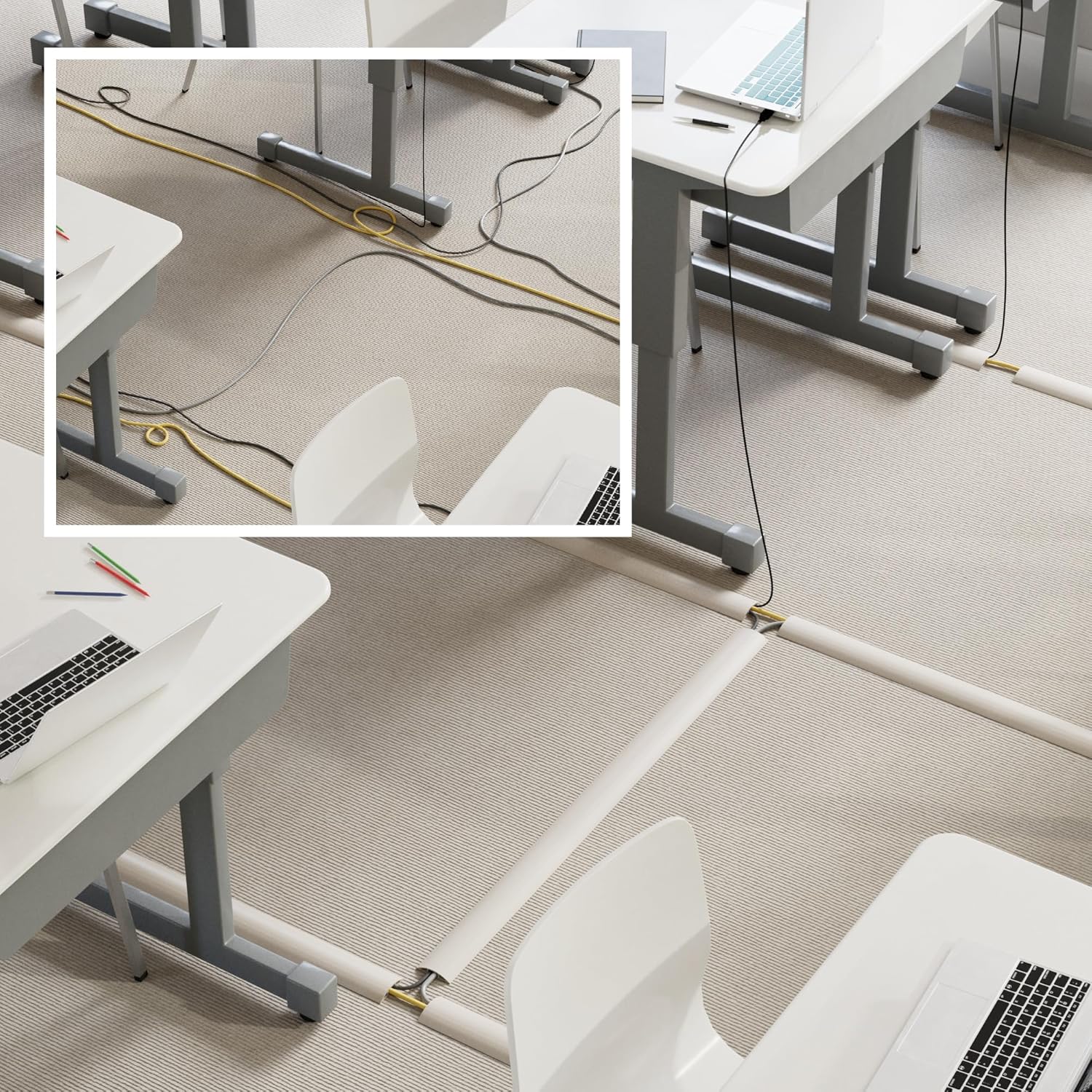 D-Line 30ft Floor Cord Cover, Floor Cable Protector, Extension Cord Cover, Protect Wires & Prevent Cable Trips, Cable Management Solution - Cord Cavity = 0.63" (W) x 0.31" (H) - Beige