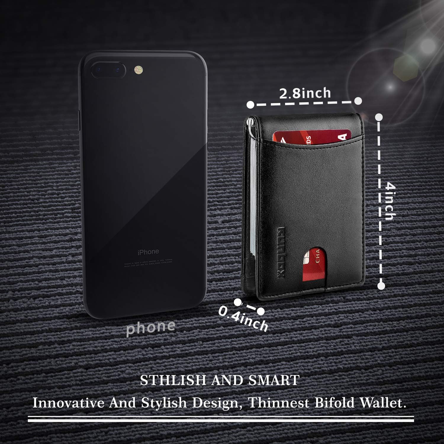Slim Wallet for Men Genuine Leather RFID Blocking Bifold Minimalist Front Pocket Mens Wallet with Money Clip Thin Gift Box
