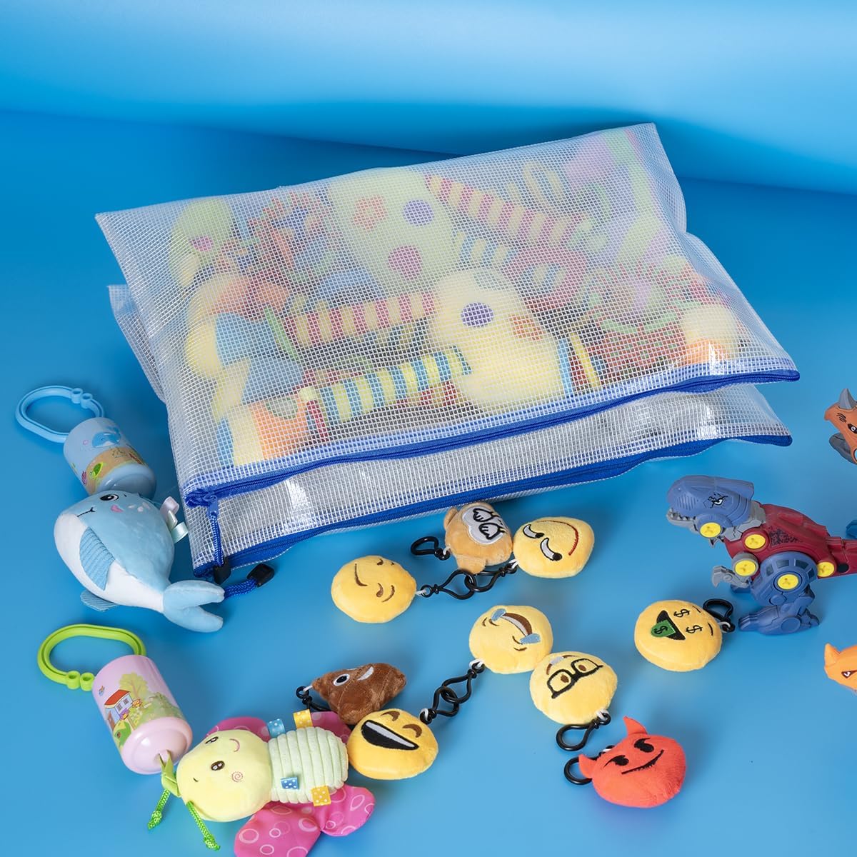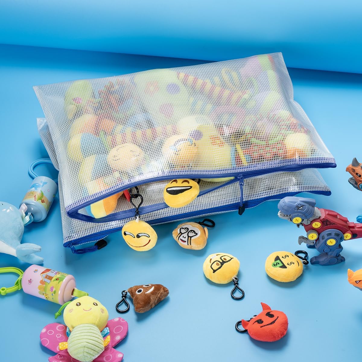 AUSTARK 10 Pcs Zipper File Bags, Waterproof Plastic Mesh Pouch for Office School, Board Game Storage Bags (A3 Size 16.9''x12'', White and Blue)