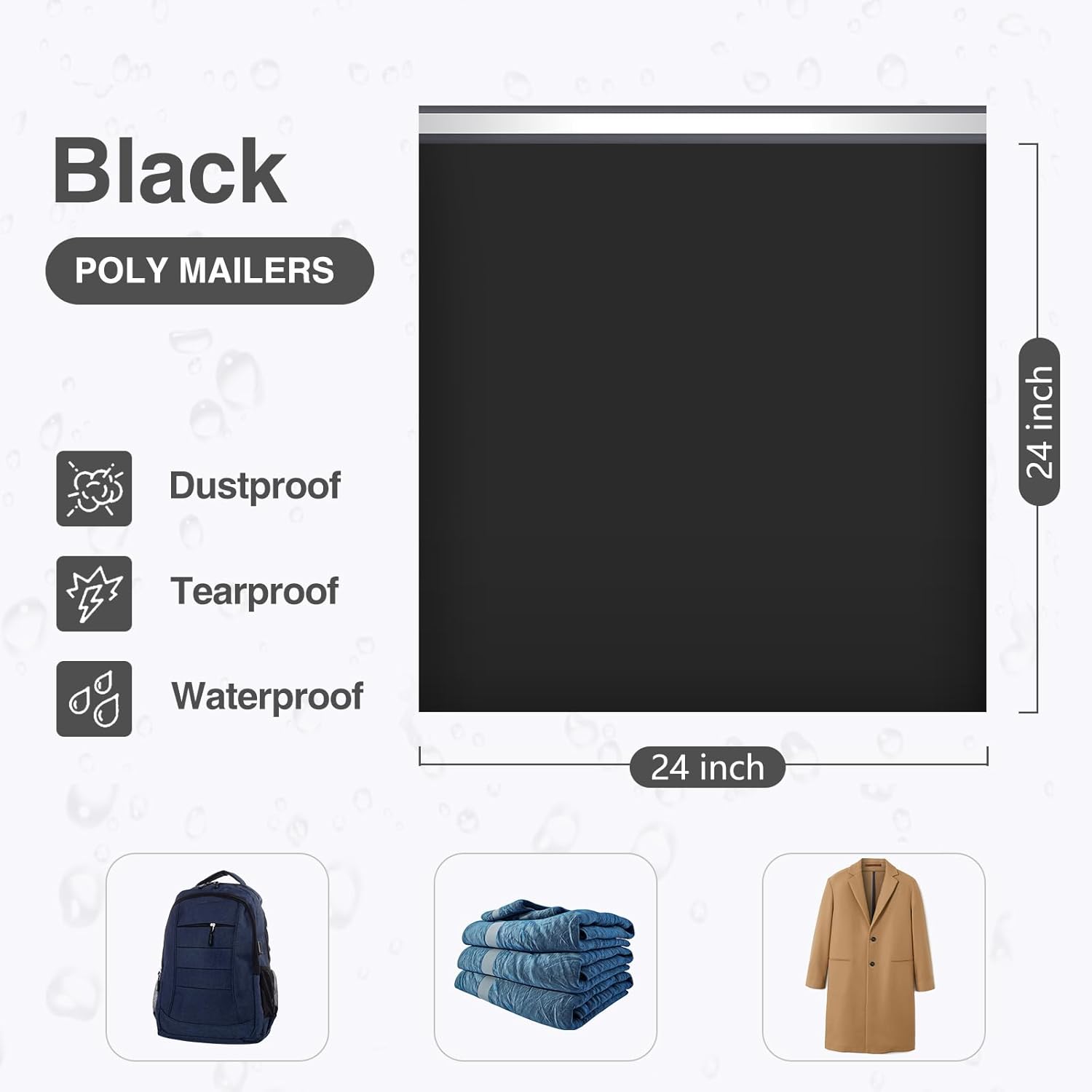 UCGOU Poly Mailers 24x24 Inch Black 50 Pack Extra Large Shipping Bags Strong Thick Mailing Envelopes Self Seal Adhesive Waterproof and Tear Proof Shipping Bags for Clothes