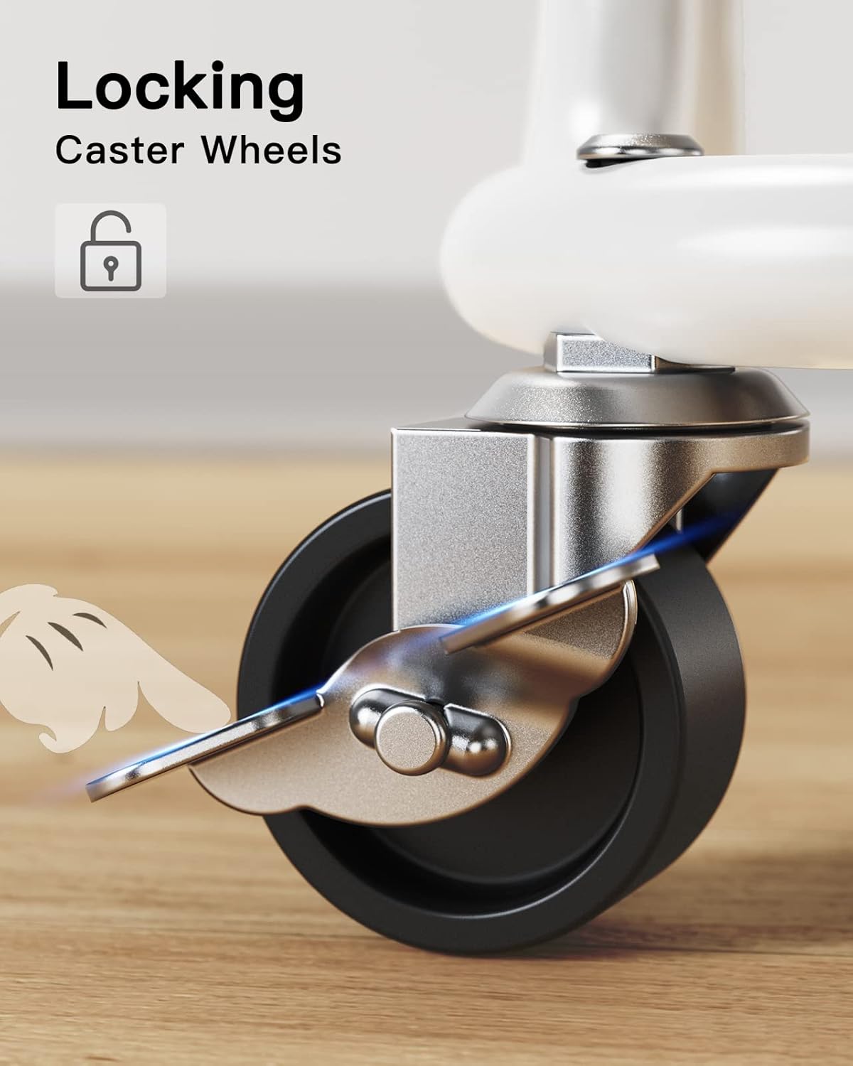 Pipishell 3 Tier Metal Rolling Utility Cart, Heavy-Duty Storage Rolling Cart with 2 Lockable Wheels, Multifunctional Mesh Organization Utility Cart for Kitchen Dining Room Living Room (White)