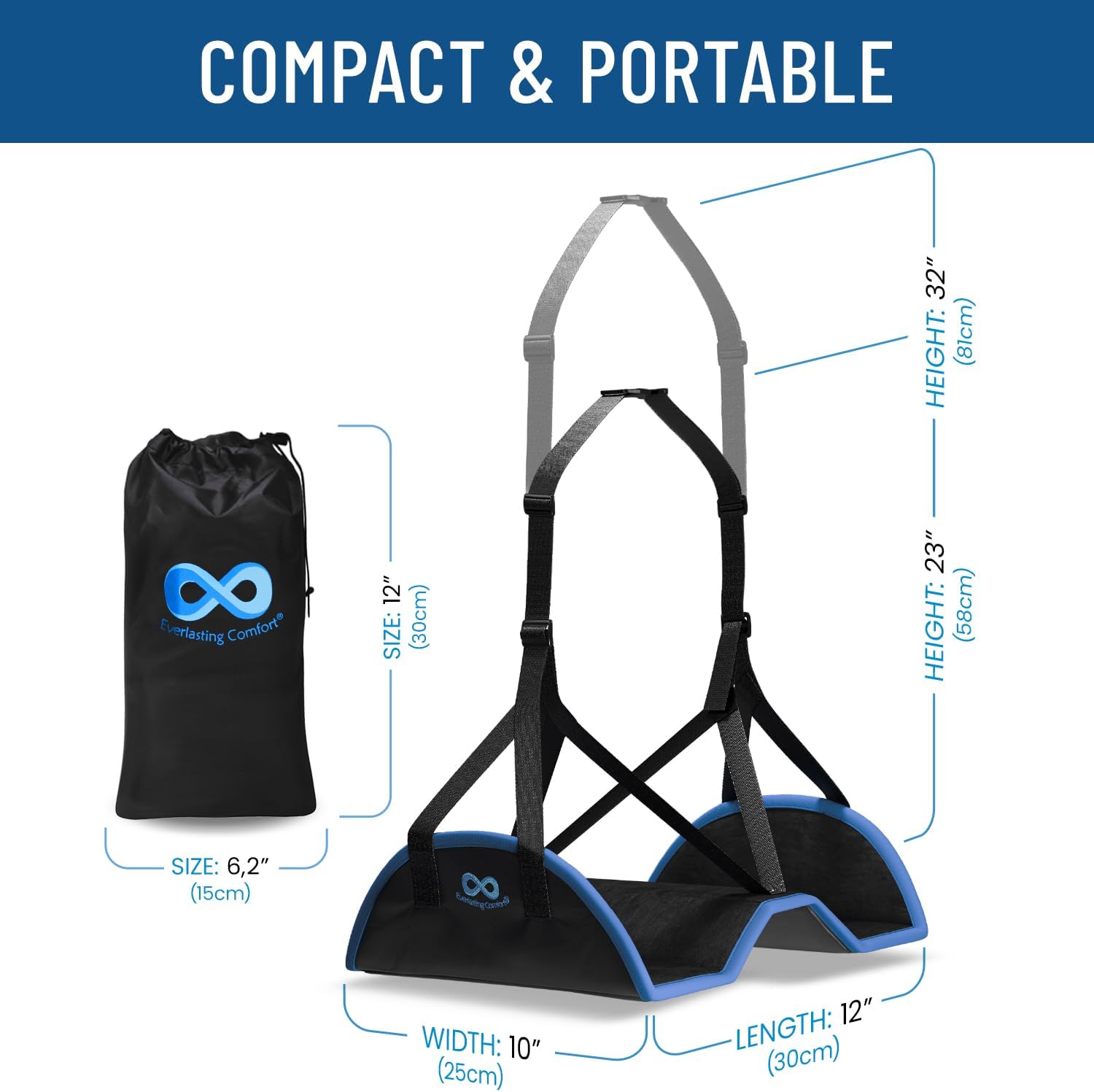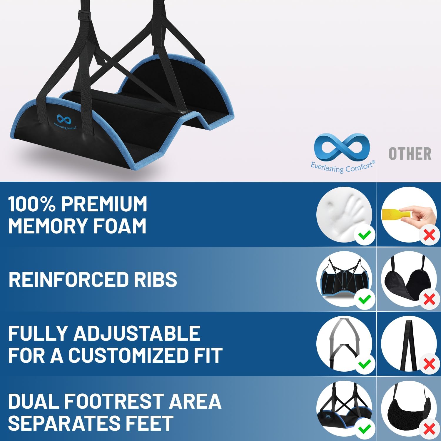 Everlasting Comfort Airplane Foot Hammock - Memory Foam Foot Rest for Plane Travel - Portable Foot Rest for Air Travel, Desk & Car - Airplane Essentials Foot Hammock for Plane Travel