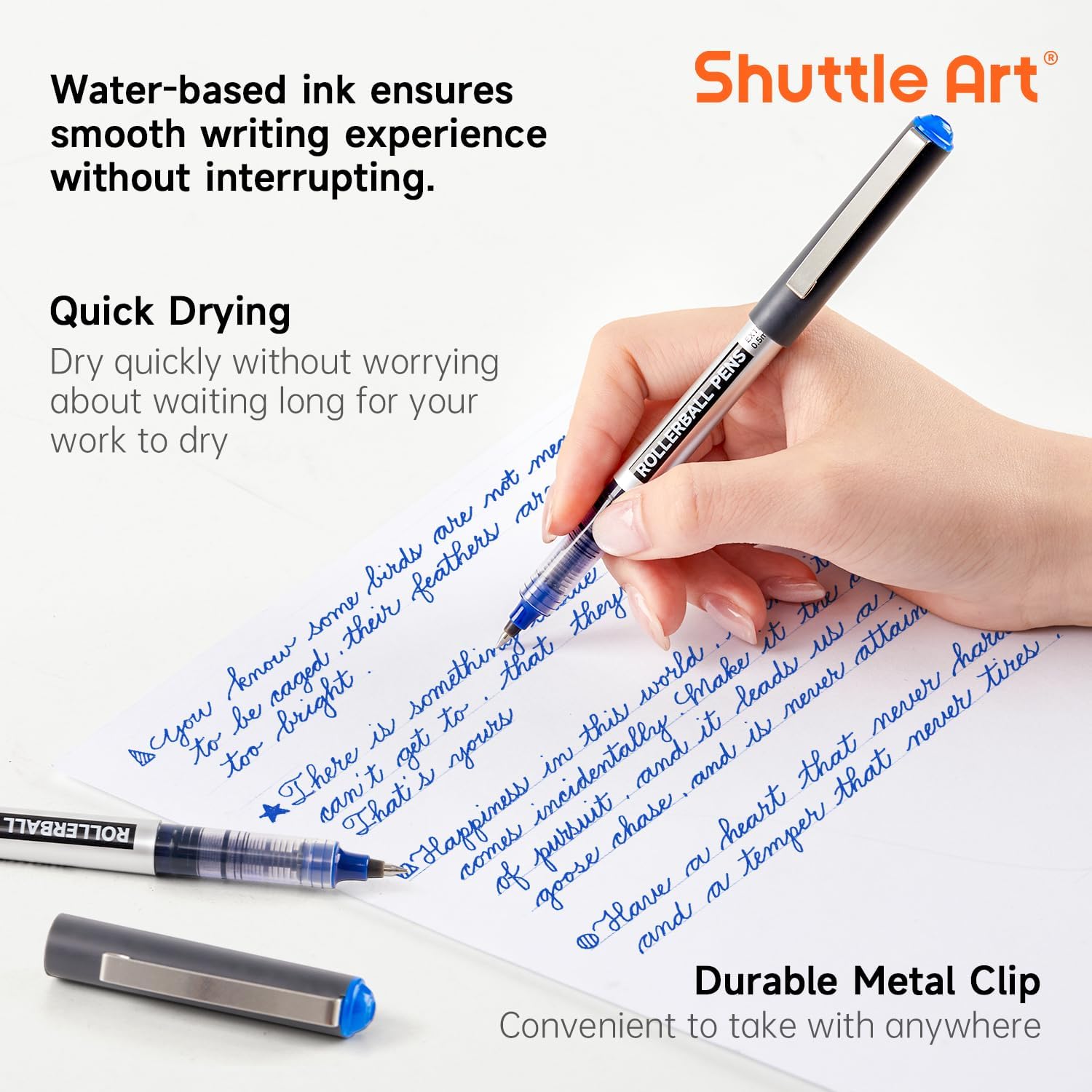 - PREMIUM DESIGN: Shuttle Art extra fine point pens with comfortable grips are easy to hold, giving you the best control of your lines. Durable metal clip makes it convenient to carry with. Larger ink volume, longer lasting time. What are you waiting for? Take actions and get yours now!
