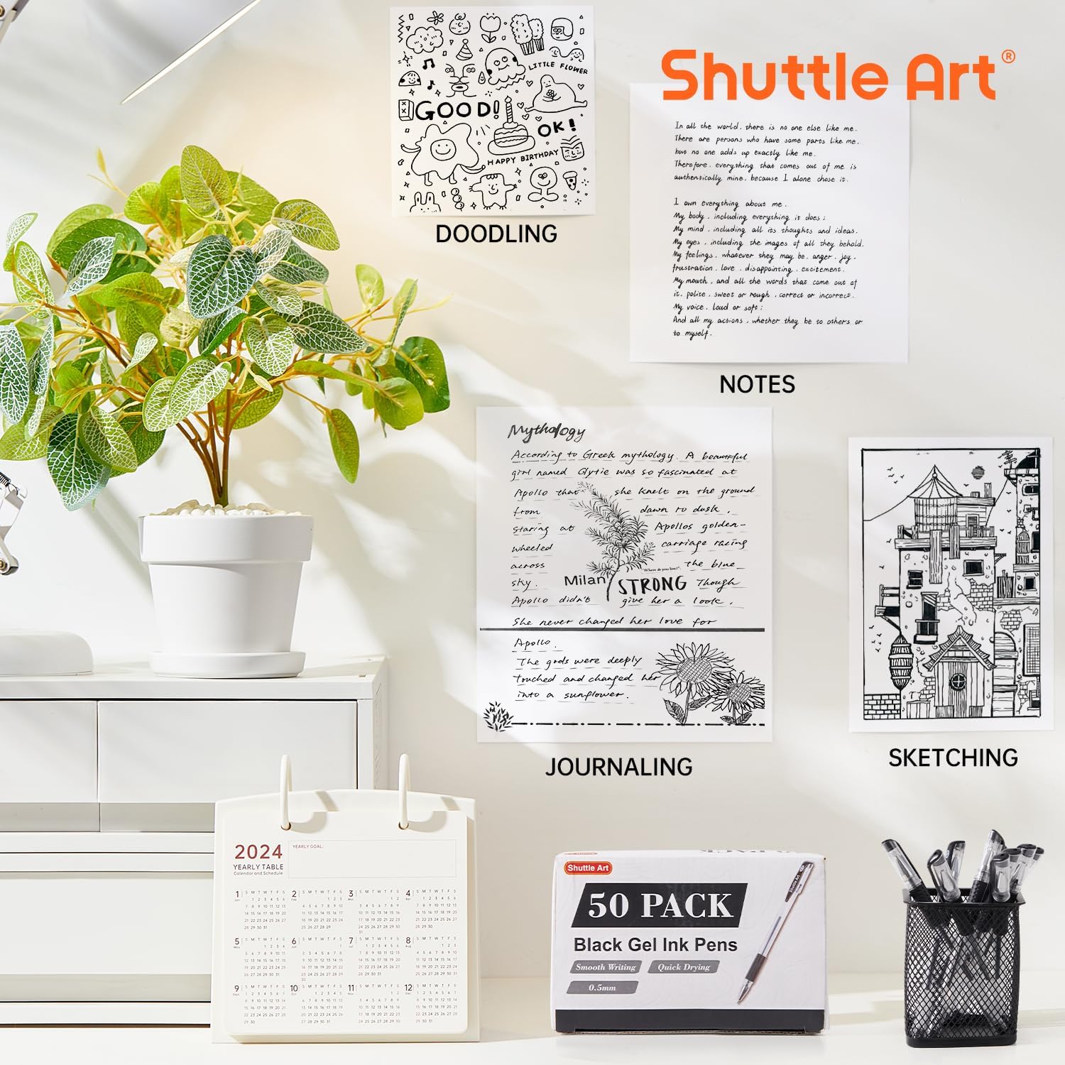 - PREMIUM DESIGN: Shuttle Art black gel pens with comfortable rubber grips are easy to hold. Durable clip makes it convenient to carry with. Detachable cap prevents ink from drying out and transparent barrel helps you see how much ink is remaining.