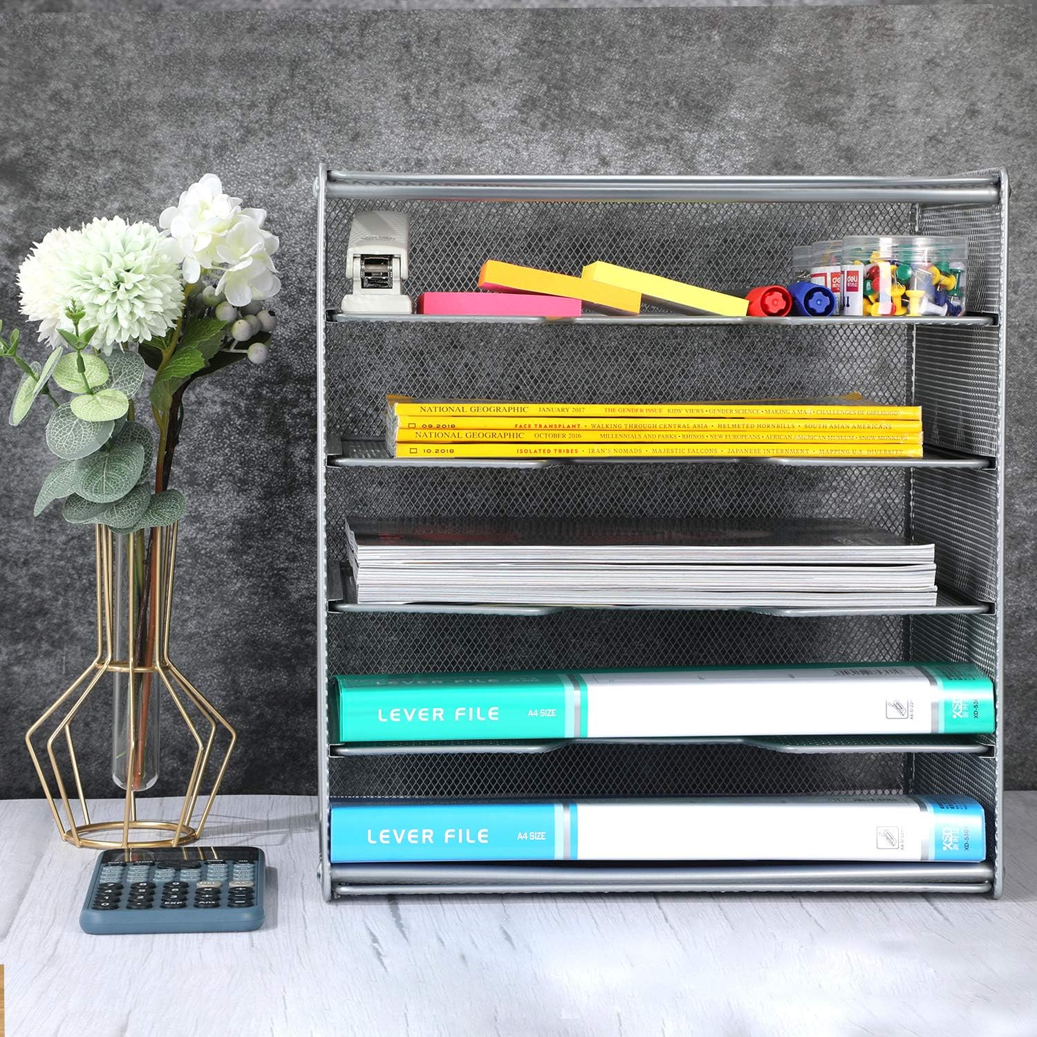 - Stacked Shelf Unique Design: Unique 5-Tier paper sorters are the perfect solution to keep your desk organized in a different new way.