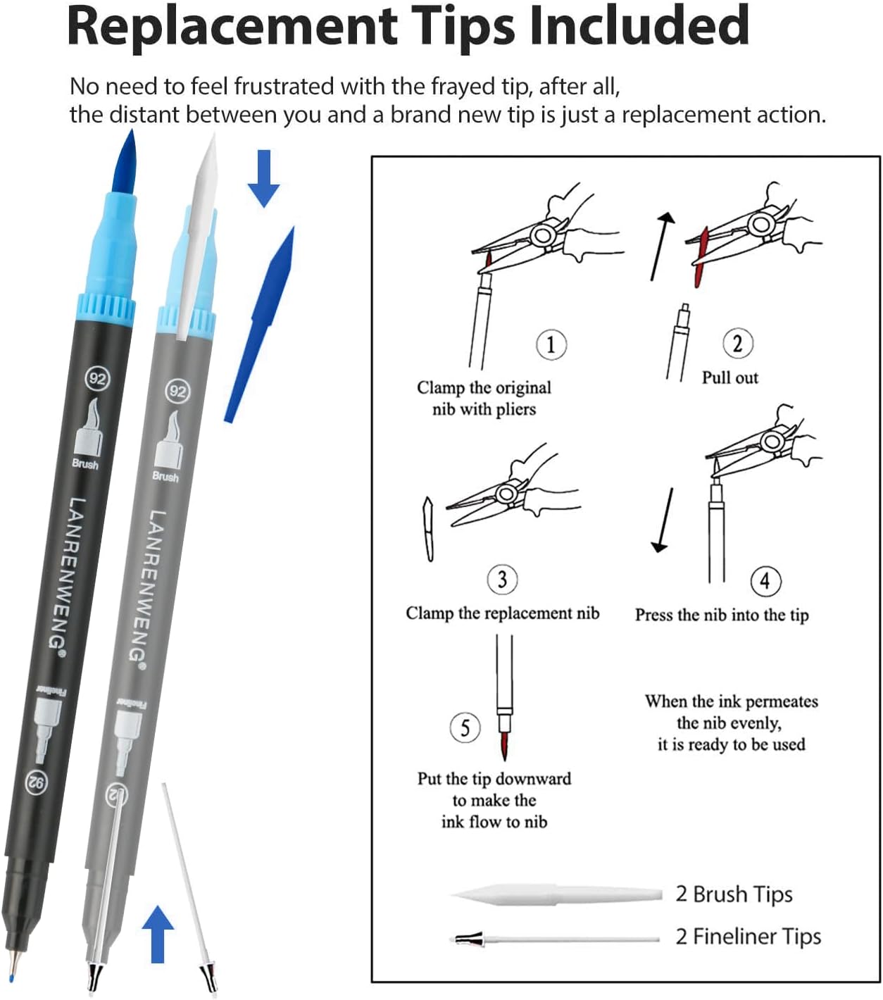 - VERSATILE USE: The Duo Tip Marker Pen Set can do it all. It's perfect for drawing, illustrations, calligraphy, card making, stamping, color books, and anything other you idea. No matter your needs, these markers have got you covered!