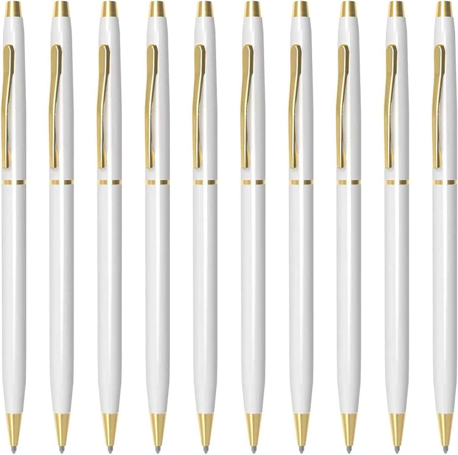 Cambond Ballpoint Pens White Pens - Black Ink Bulk Pens 1.0 mm Medium Point Retractable Metal Pen Comfortable Writing for Men Women Police Uniform Office Business, 10 Pack (White)