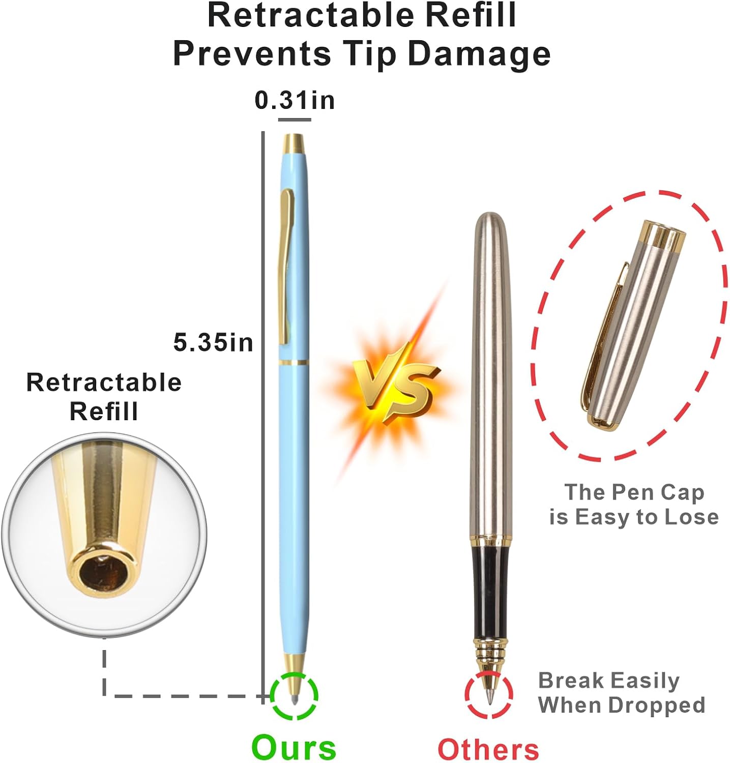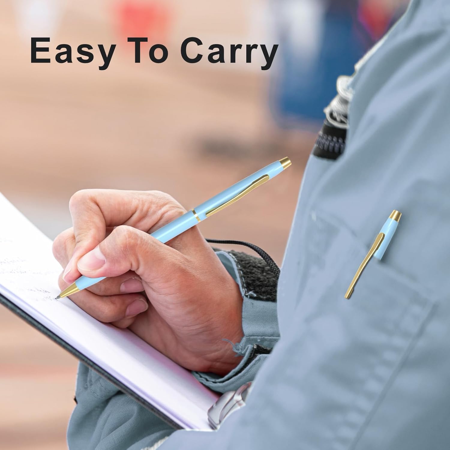 - Classic Black Ink Pens: The blue ballpoint pens measure 5.35" (H) with a sleek 0.31" (D) barrel; Ideal for men, executives, flight attendants, police officers, students, business meeting, office, college, wedding, or everyday professional use as uniform pen, guest pen, wedding pen, etc