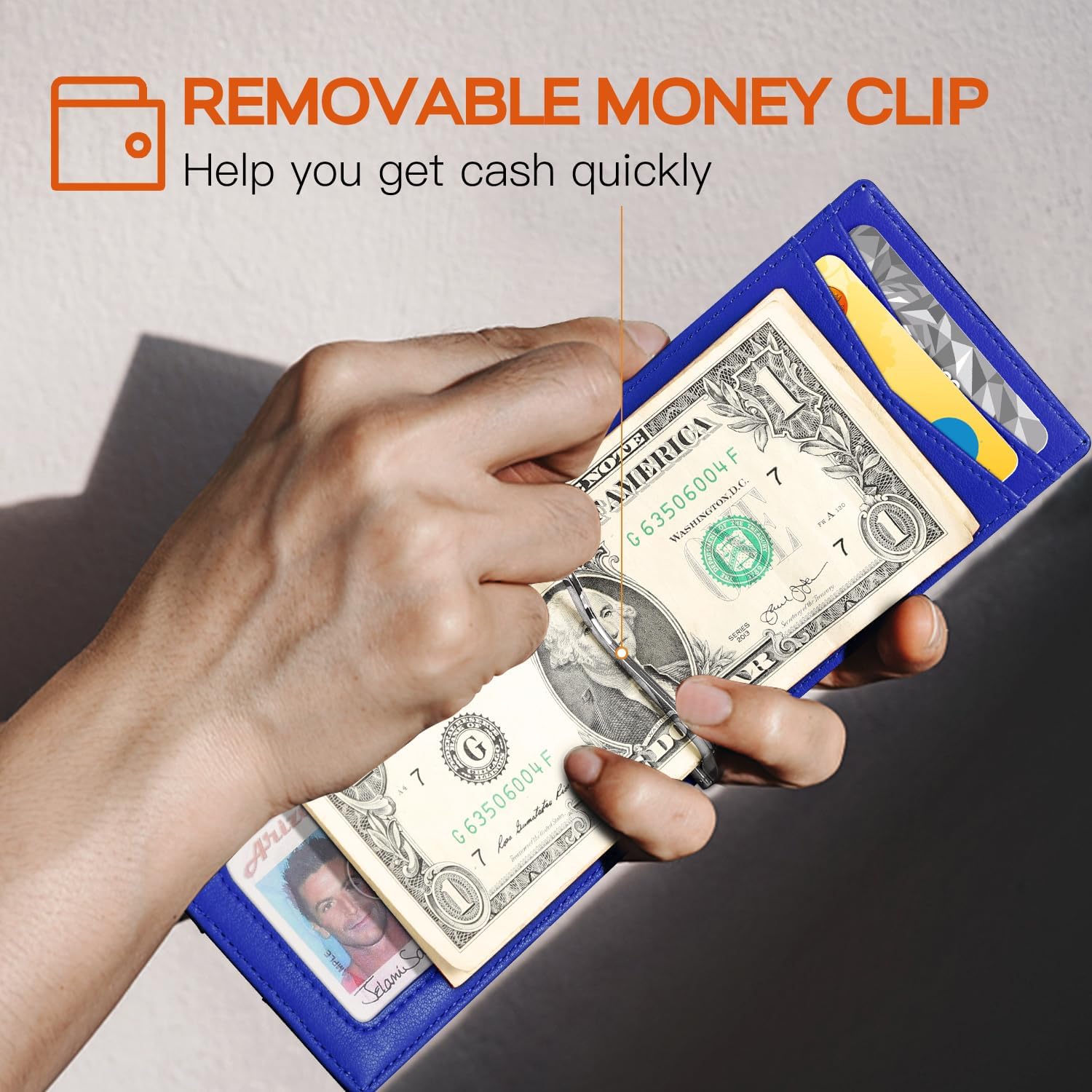 Slim Wallet for Men Genuine Leather RFID Blocking Bifold Minimalist Front Pocket Mens Wallet with Money Clip Thin Gift Box