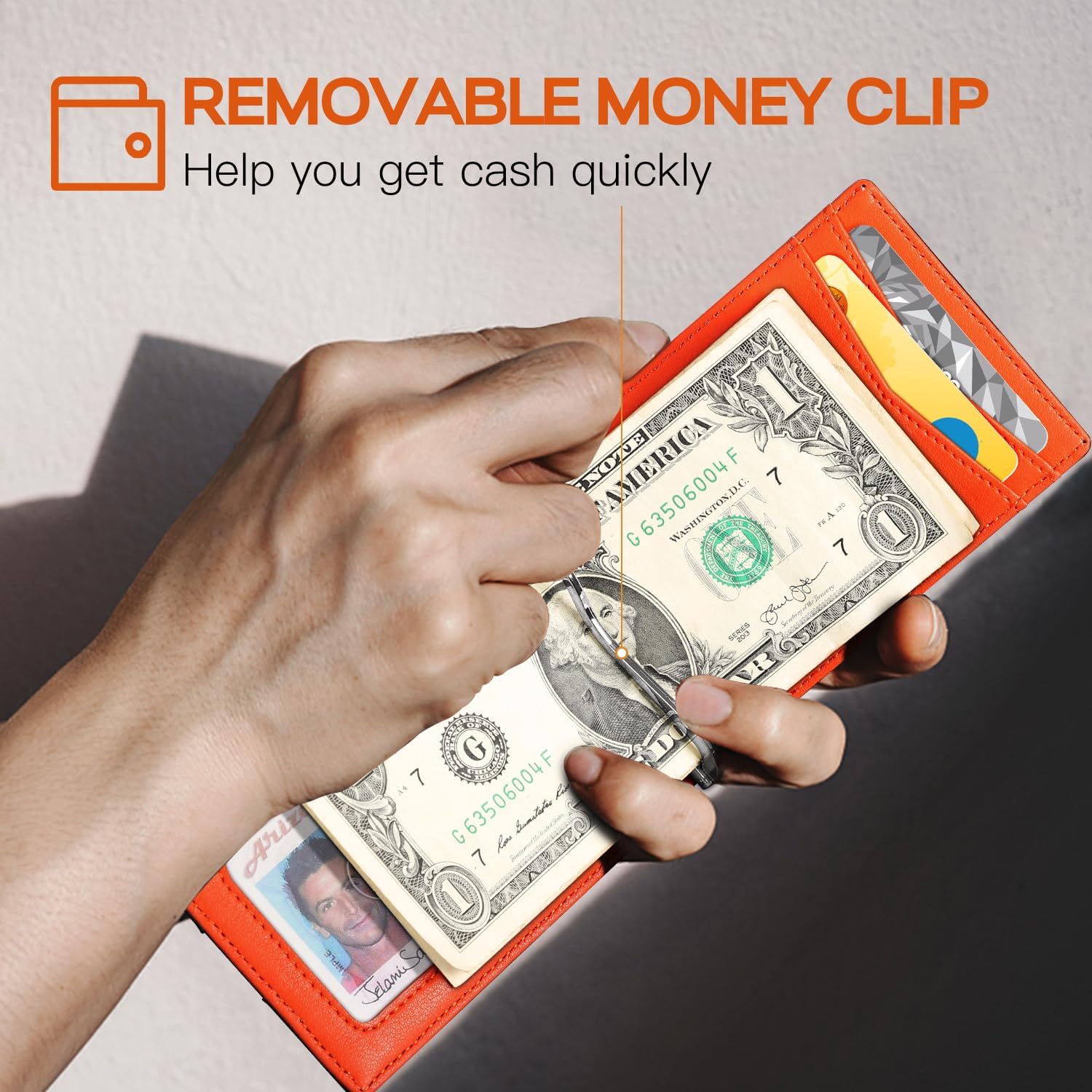 Slim Wallet for Men Genuine Leather RFID Blocking Bifold Minimalist Front Pocket Mens Wallet with Money Clip Thin Gift Box