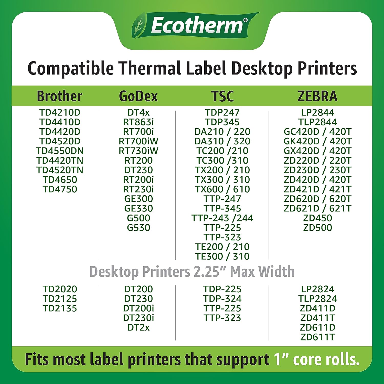 2.25" x .5" Thermal Labels | 6 Rolls | 25200 Labels | fits Zebra, Munbyn, Rollo, Godex, Arkscan, iDPRT, Offnova Thermal Label Printers and More | Blank White Adhesive Stickers by Ecotherm