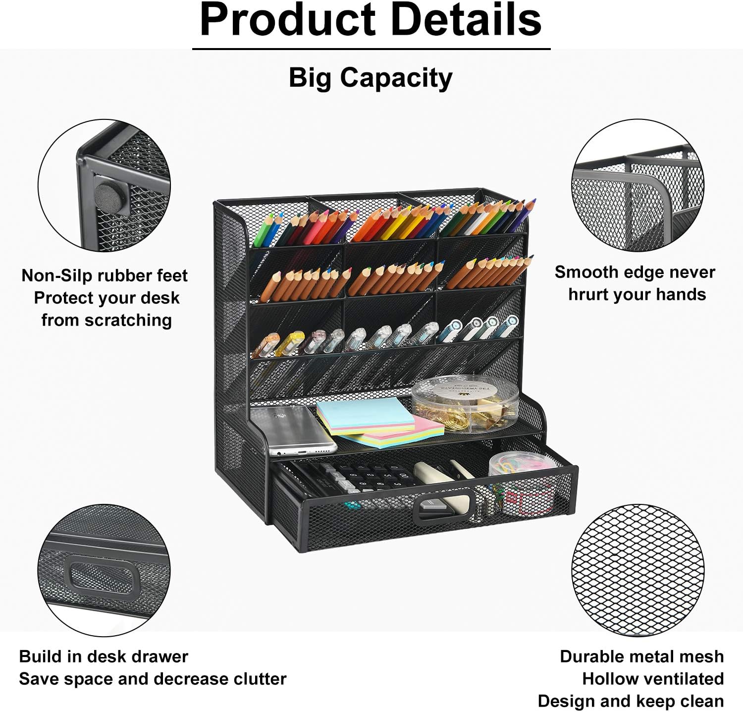 - Color : Balck Mesh Pen Holder with Drawer