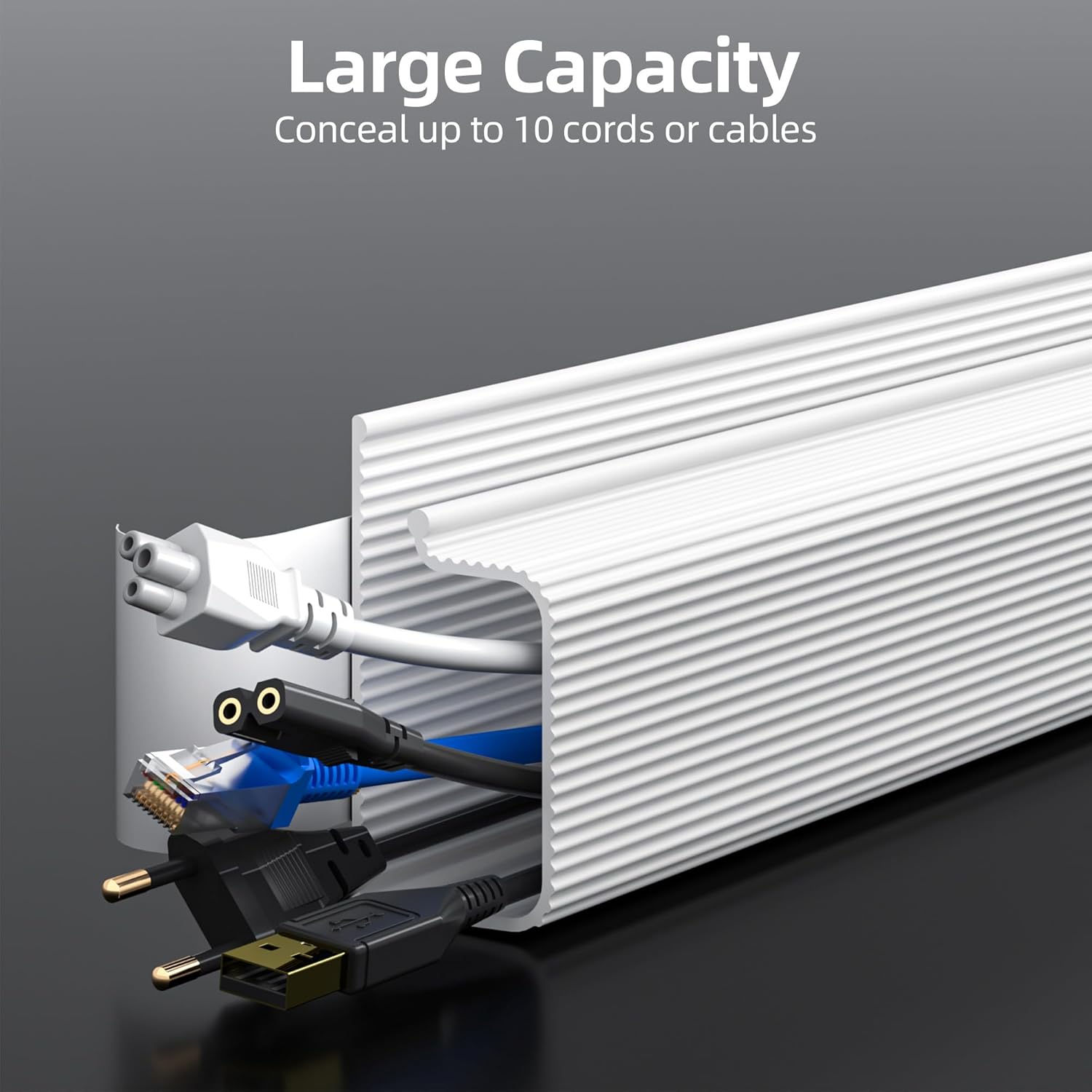 YECAYE 94.2 in Cable Management Under Desk,Easy Install Adhesive Mount Cord Hider,Cord Organizer,Wire Management,Wire Hider for Office Organization,Child & Pet Proof,White