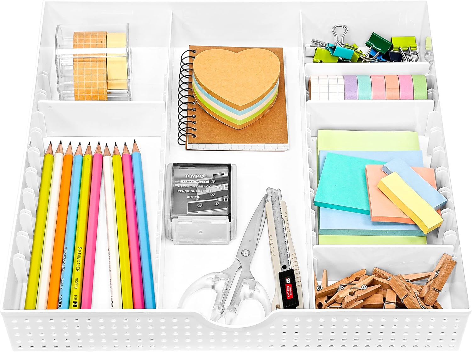 - Adjustable Drawer Organizer: Our drawer organizer has 3 sections with 4 sections adjustable perfect for desk accessories, pencils, pens, cosmetic makeup and others