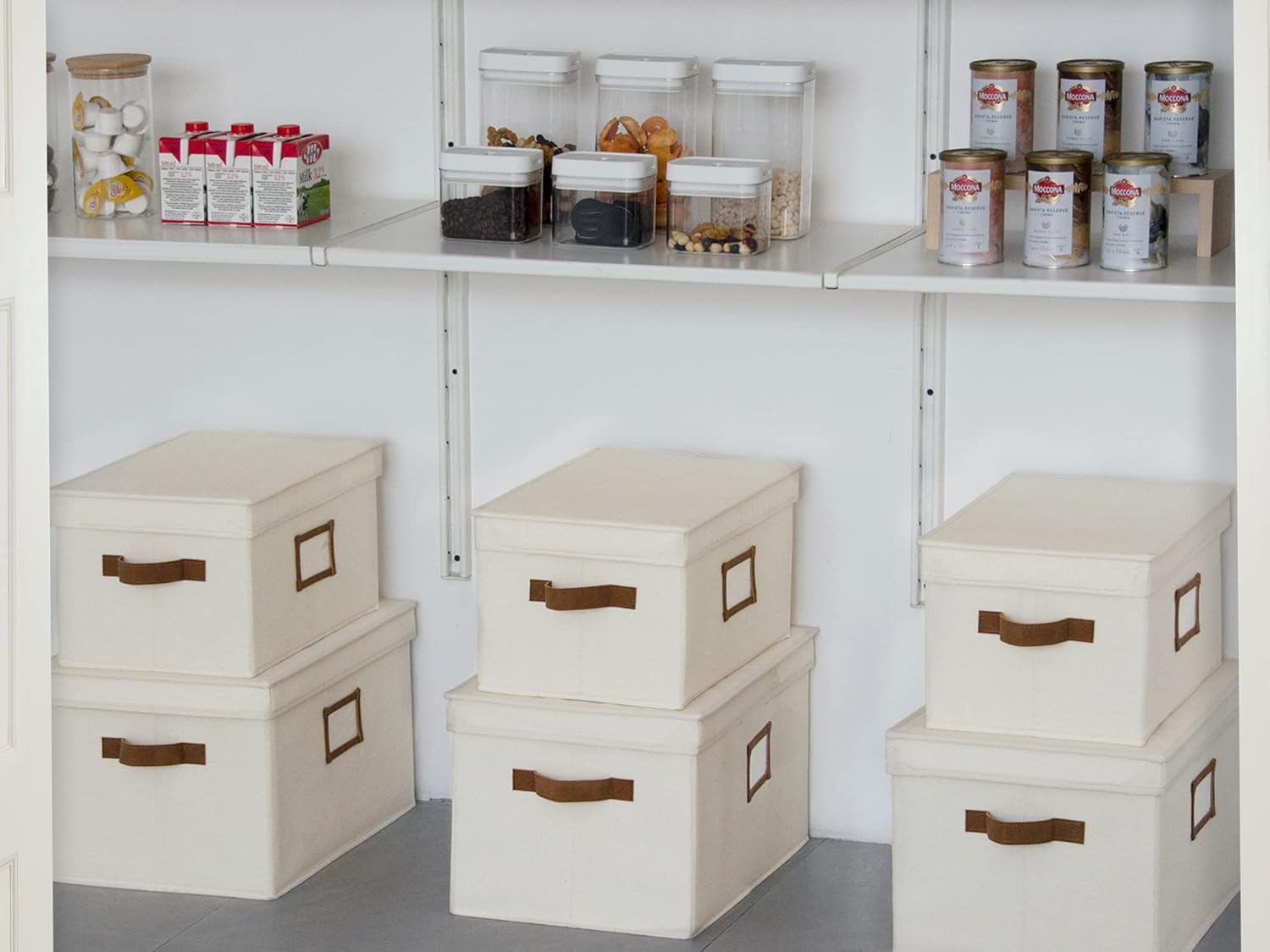 StorageWorks Large Storage Bins with Lids, Decorative Storage Boxes with Lid and PU Handles, Foldable Storage Baskets for Closet, Shelves, Stackable, Ivory White, 3-Pack