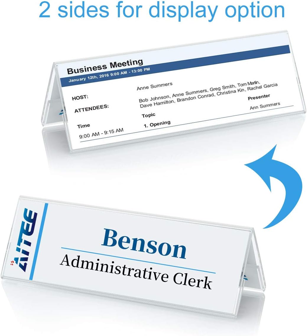 - VERSATILITY - Acrylic nameplates with double-sides load design. These nameplates for desks are easy insertion of printed paper. The tent nameplate is fit for training events, presentations, classrooms, business offices, trade shows, and much more.