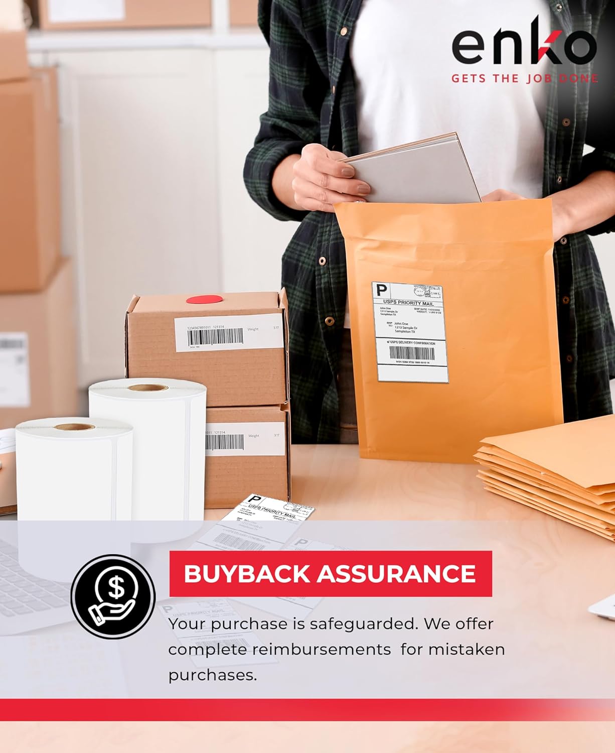 enKo 1 Stack/2000 Labels 4" x 6" Fanfold Direct Thermal Label Compatible for Rollo Zebra Printer - Shipping, Mailing, Postage, Perforated, Permanent Adhesive (2 Labels/Fold)