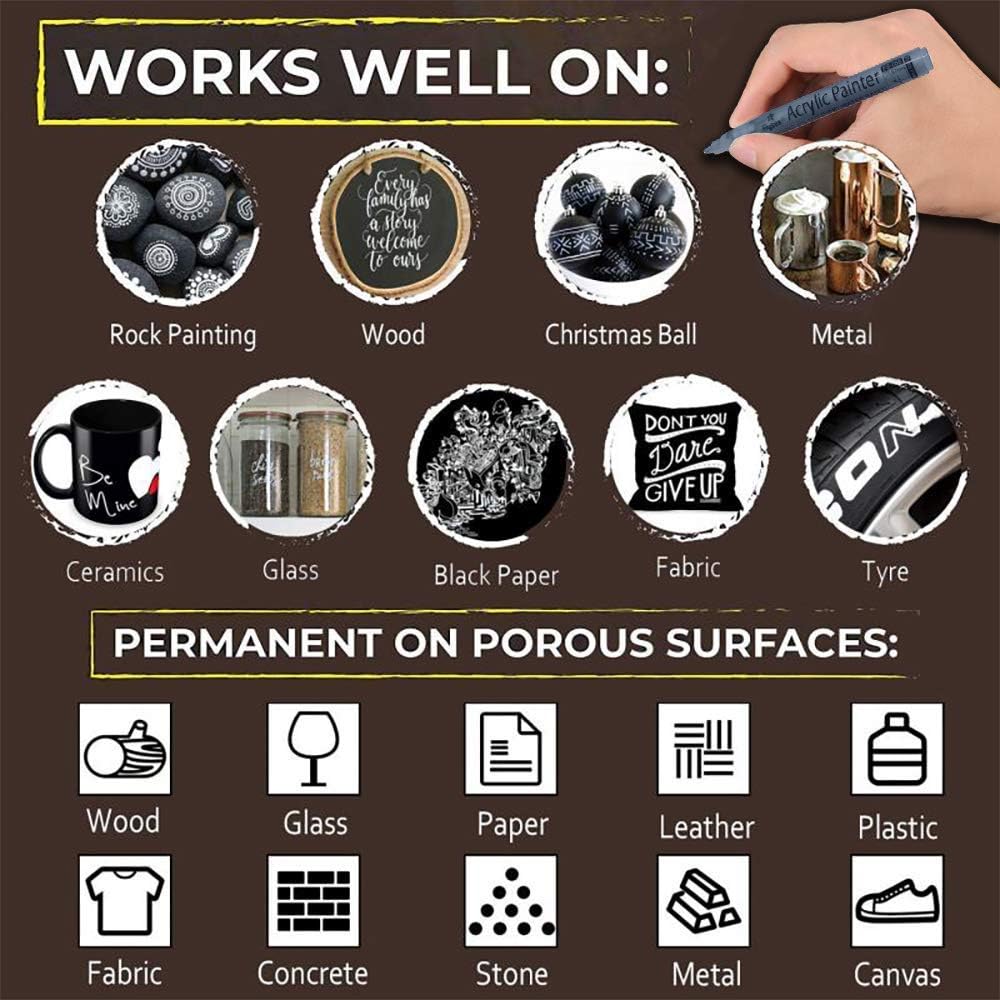 - ⭐PREMIUM QUALITY & ELEGANT DESIGN -- Nawod permanent marker paint pen utilize vivid, water-based ink that dries quickly to produce a very durable opaque and glossy finish on light and dark surfaces. Including rock painting enamel ceramic wood leather plastic fabric canvas stone glass metallic wood chalkboard writing craft supplies etc.
