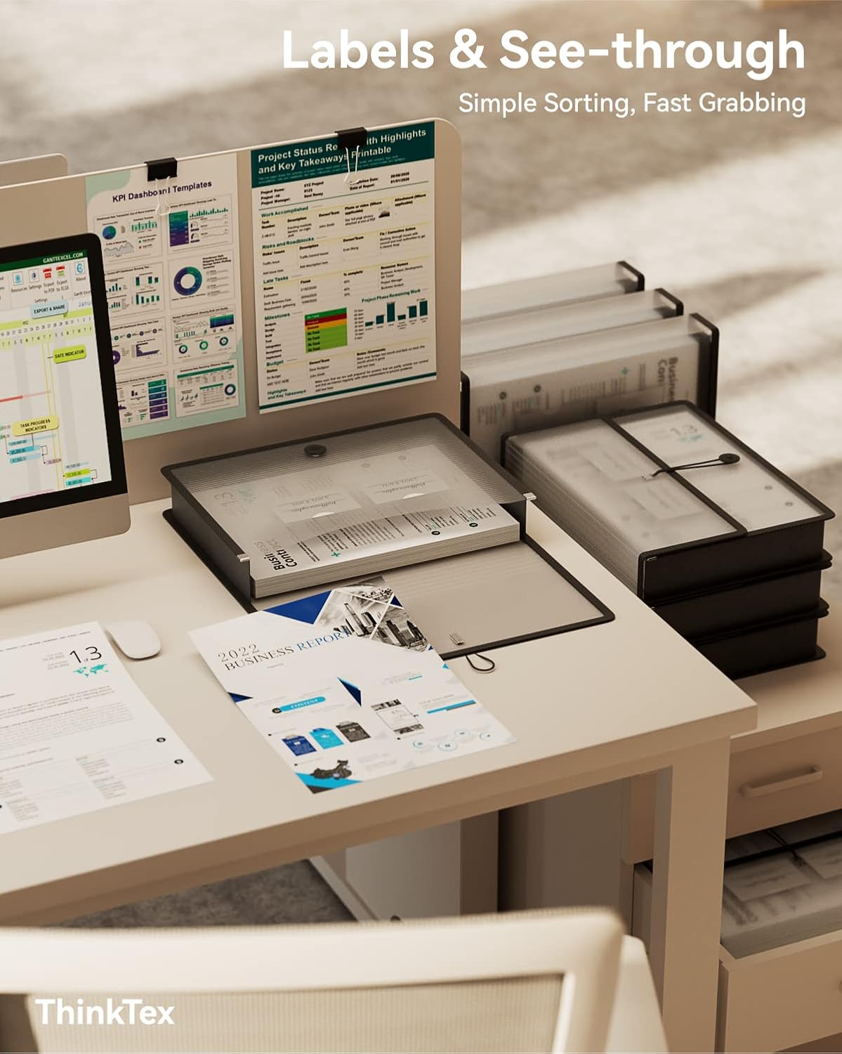 - "SEE THROUGH" PLASTIC FOLDER - ThinkTex transparent expanding file folder with elastic closure, large capacity, fit letter/A4 size
