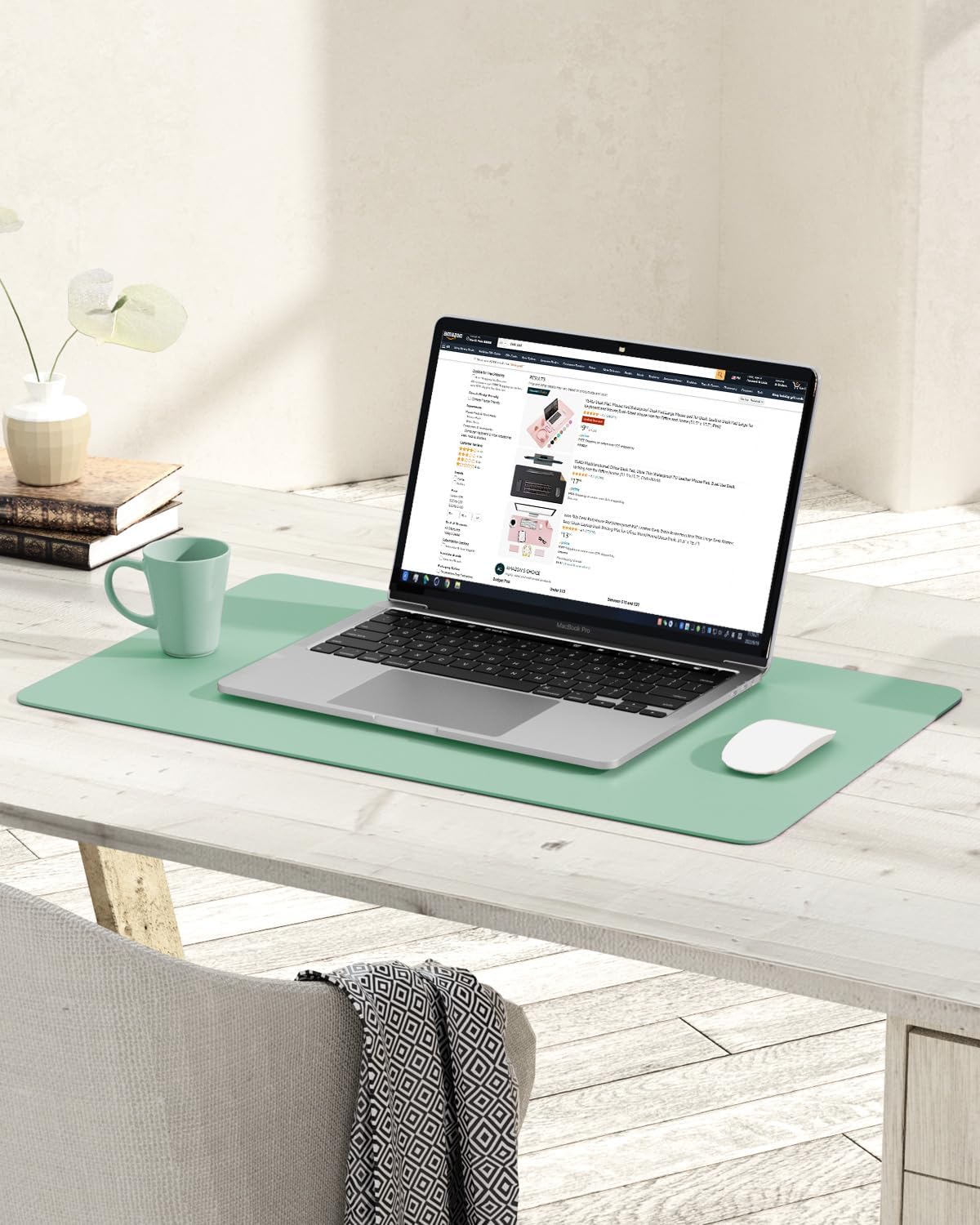 YSAGi Non-Slip Leather Desk Pad, Waterproof Laptop Computer Desk Keyboard Mat, Table Protector Blotter Mat, Large Mouse Pad for Office/Work/Home/Decor(Pale Green, 23.6" x 13.7")