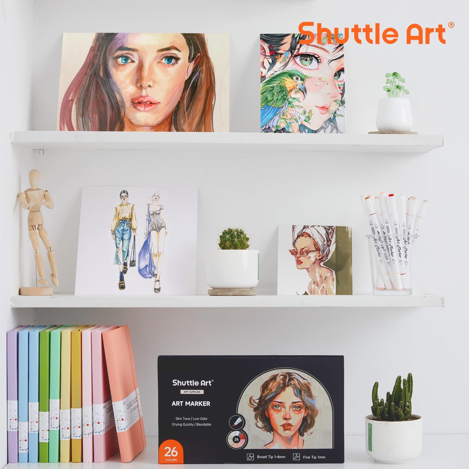 Shuttle Art 26 Colors Skin Tone&Hair Art Markers, Dual Tip Alcohol Based Flesh-Color Marker Pen Set Contains 1 Blender Perfect for Kids & Adults Portrait,Comic, Anime, Manga, Illustration