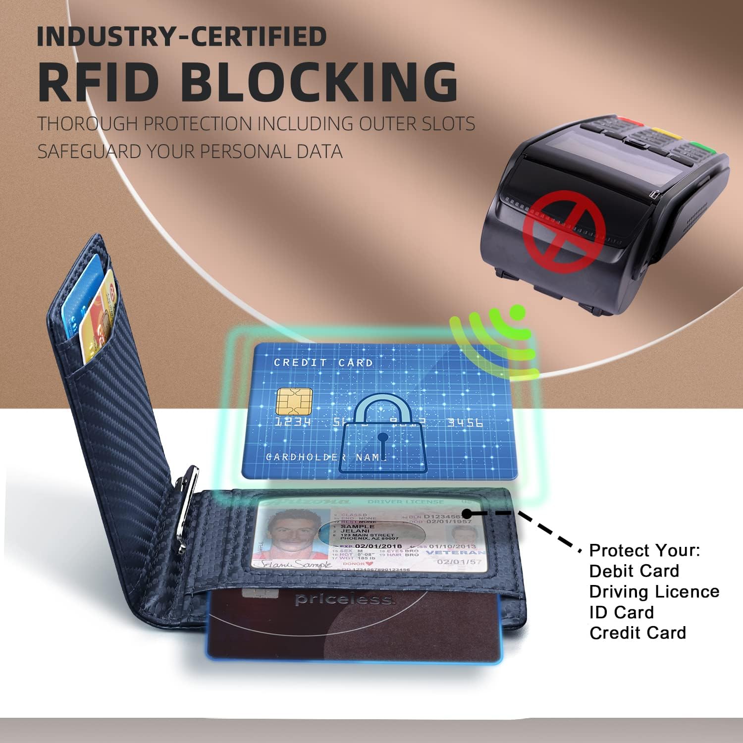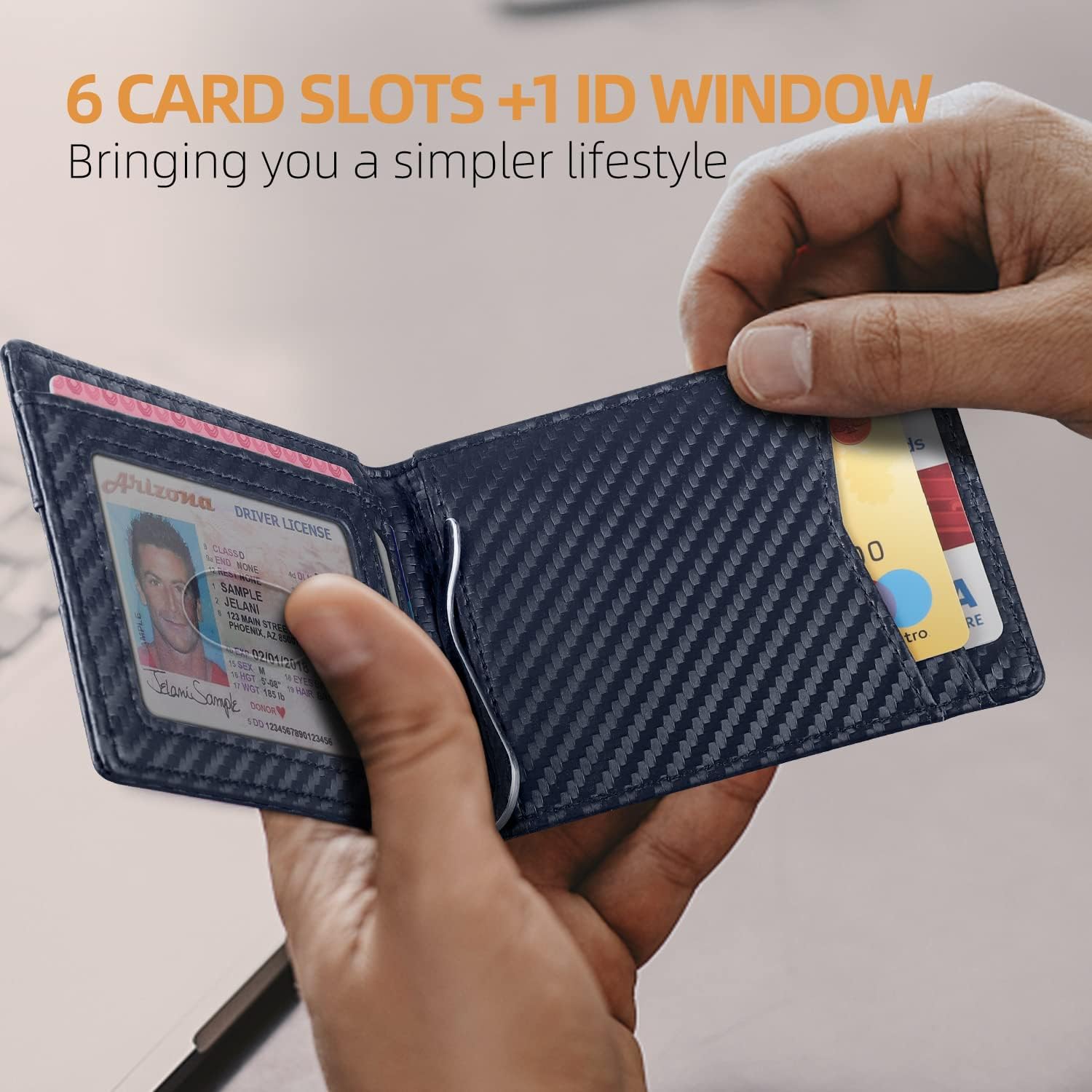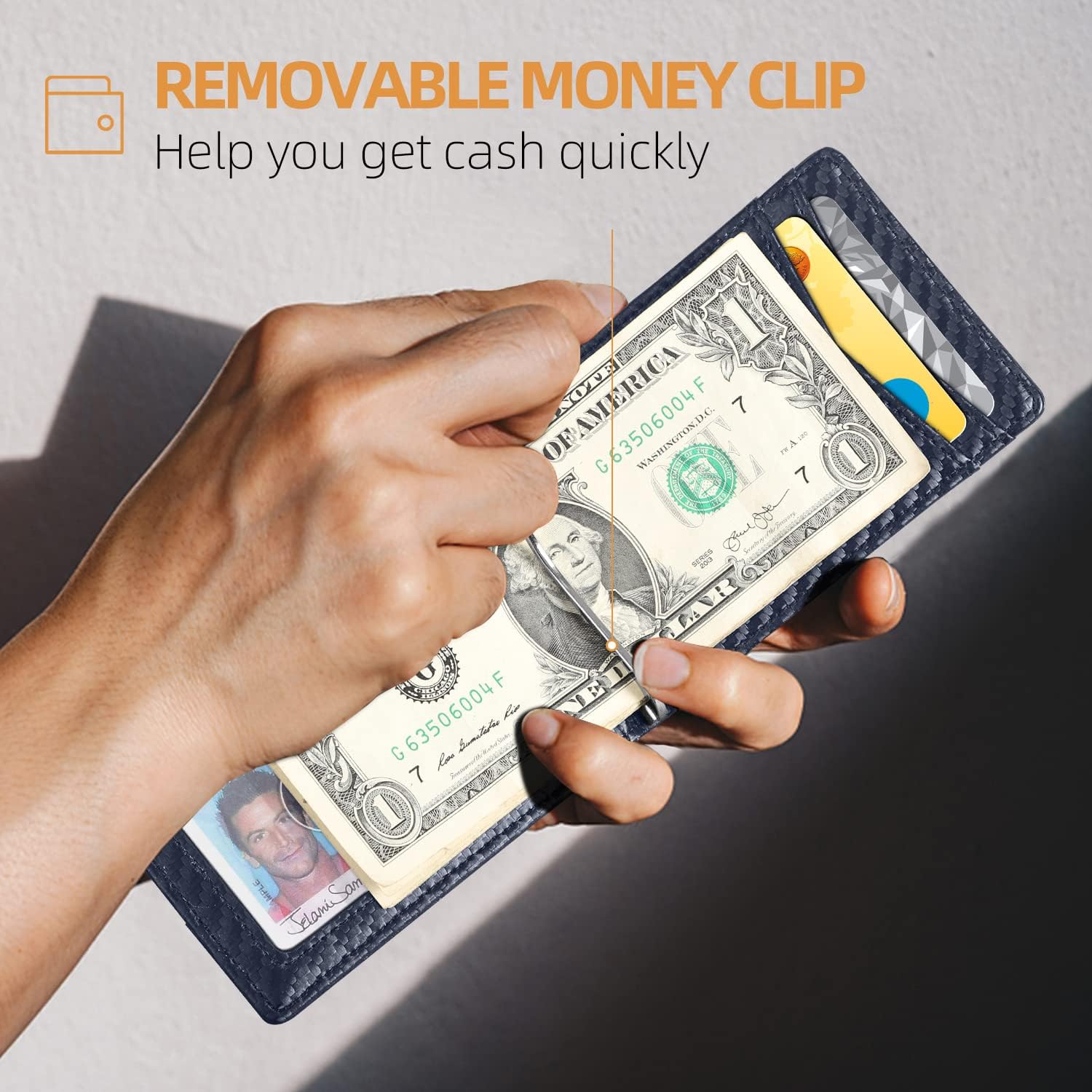 Slim Wallet for Men Genuine Leather RFID Blocking Bifold Minimalist Front Pocket Mens Wallet with Money Clip Thin Gift Box