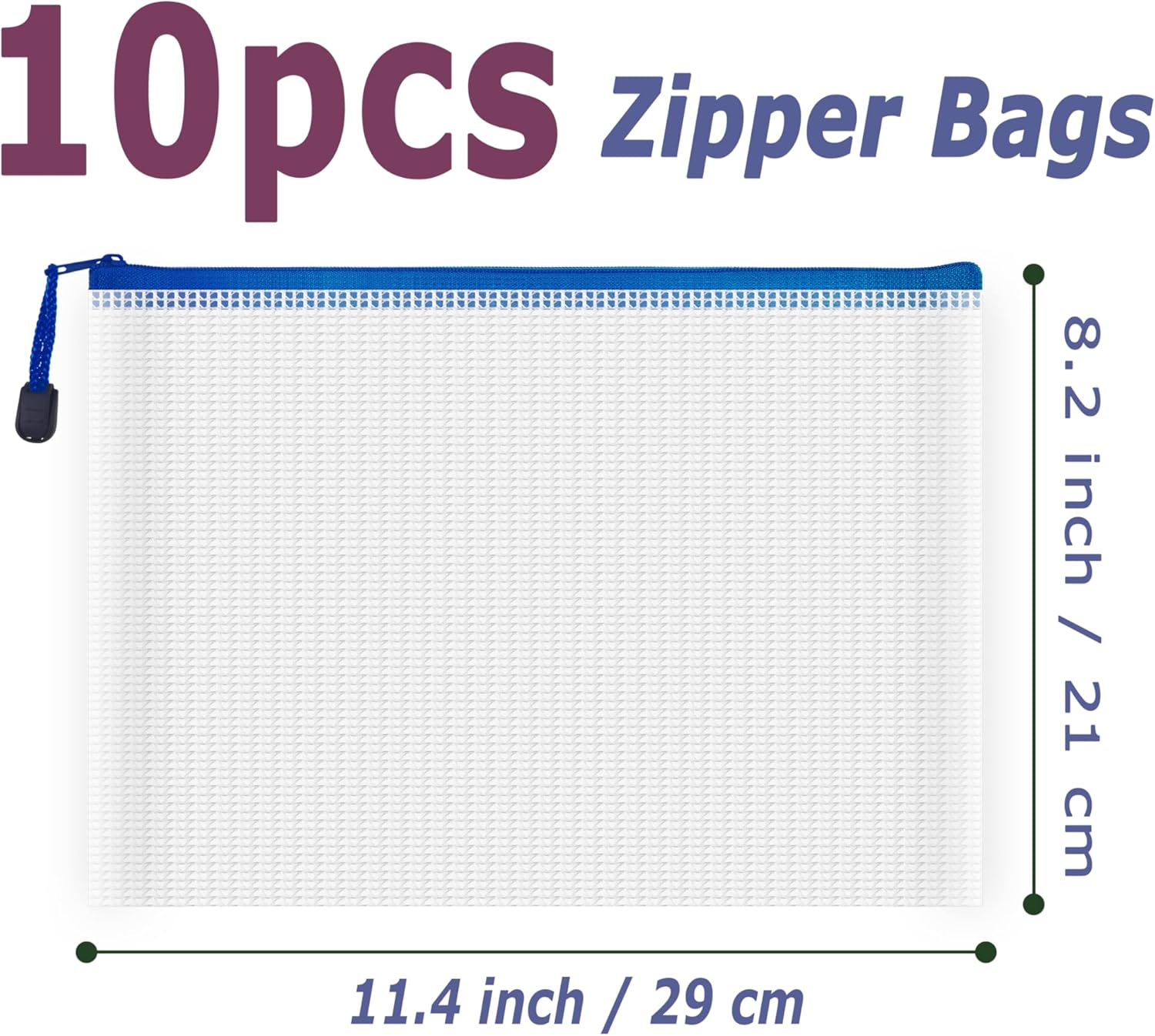 - 10 PCS Plastic mesh zipper bags, 11.4 x 8.2 inch B5 size. Widely used in office supplies, school, home daily life, hospital and travel. These pouches could meet your needs in all ways