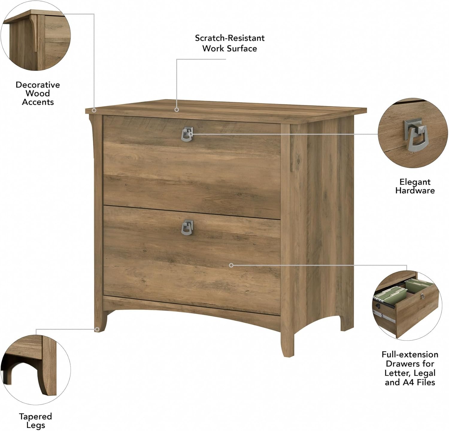 Bush Furniture Salinas 2 Drawer Lateral File Cabinet in Reclaimed Pine, Home Office Storage Solution, Organizer with Drawers for Workspace, Filing Unit