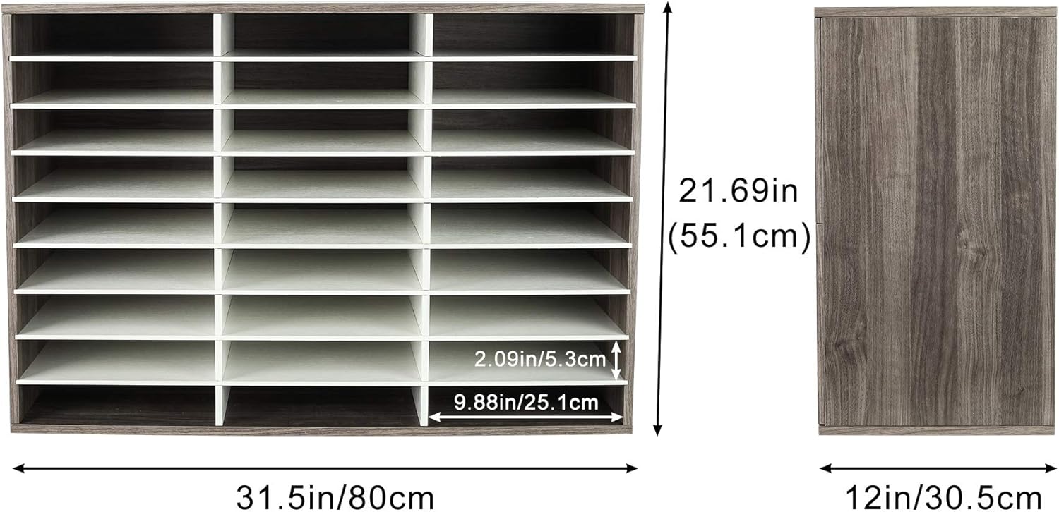 TQVAI Wood Adjustable Literature Organizer Desktop File Sorter Mail Center Paper Storage Cabinet Home & Office Mailbox School Classroom Keepers, 27 Slots Compartments, Retro Grey/White