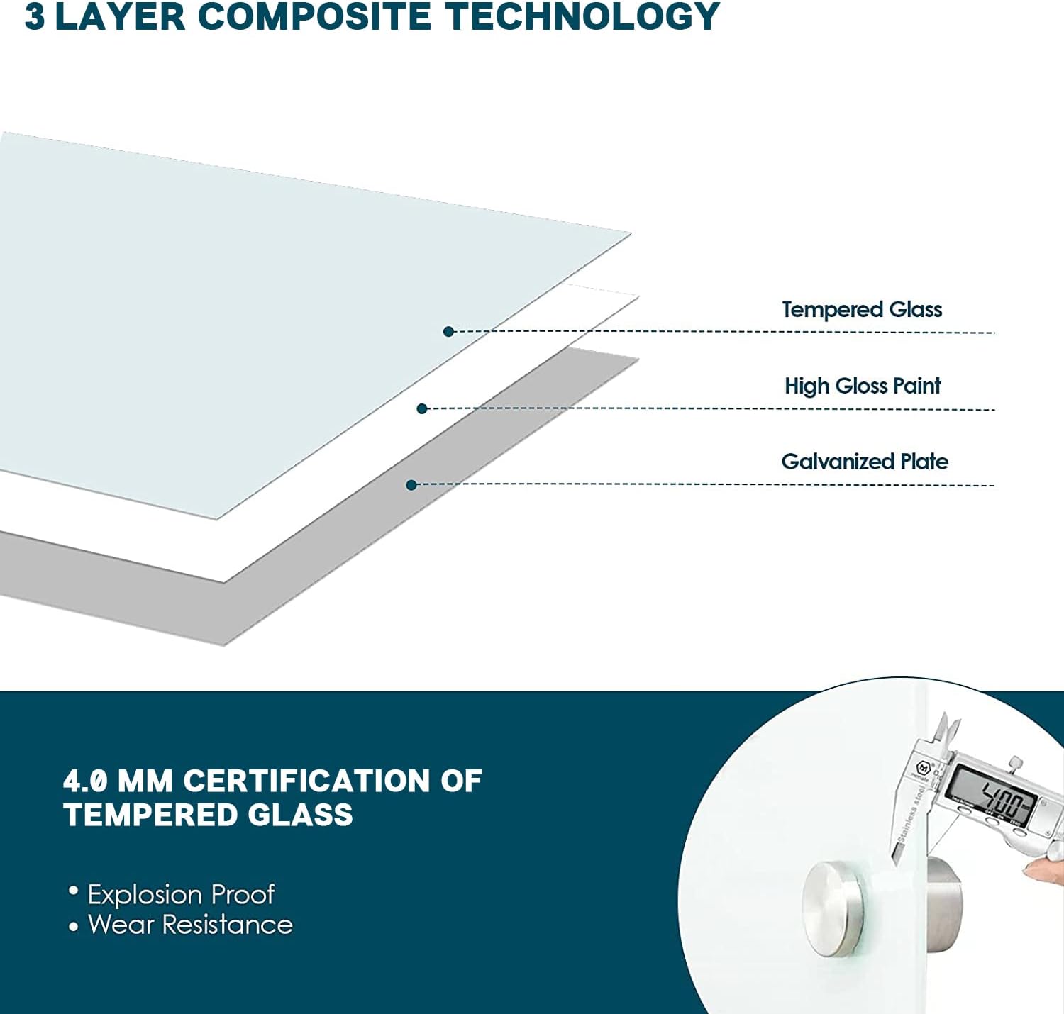 - 【Accessories included】 Glass Whiteboard measures 47 x 35 Inches, comes with 4 dry earse markers, 4 magnets, 1 glass whiteboard eraser and 1 removable aluminium marker tray. One stop shopping.