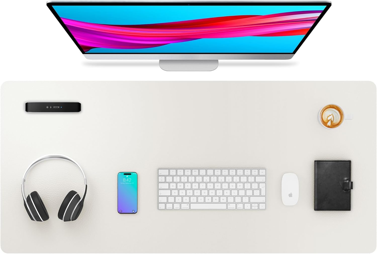 Aothia Leather Desk Pad Protector, Mouse Pad, Office Desk Mat, Non-Slip PU Leather Desk Blotter, Laptop Desk Pad, Waterproof Desk Writing Pad for Office and Home (36" x 17", Off-White)